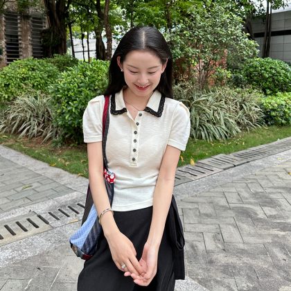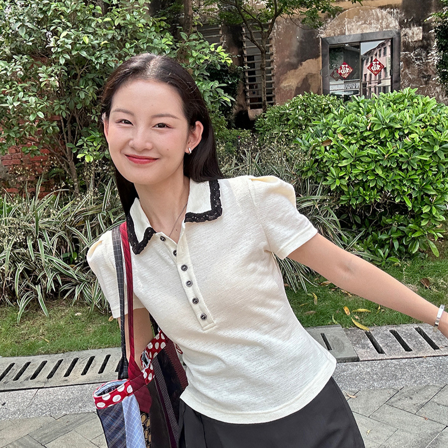 | nameOriginal | [DIGM] Korean Sweet Doll Collar Lapel Stitching Lace POLO Shirt Short Sleeve T-Shirt Women's 66018 |