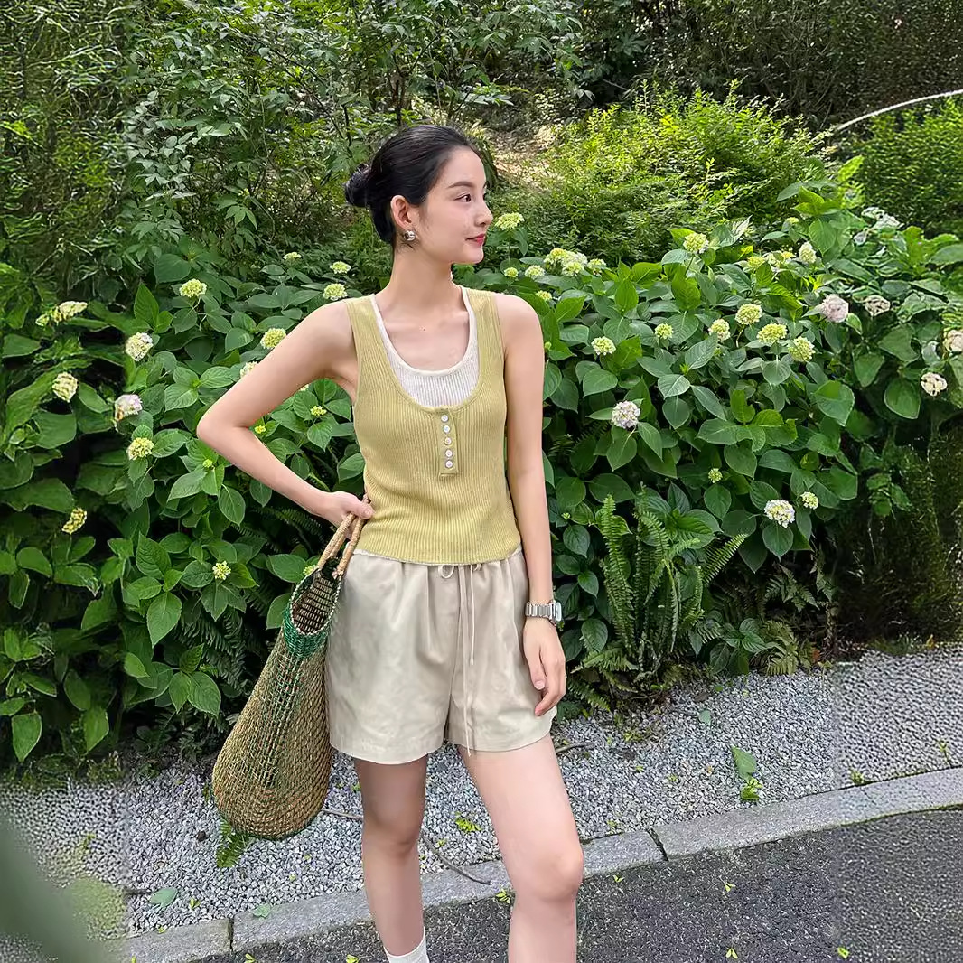 [DIGM] Minimalist Versatile Classic Tisel Cotton Loose Waist Loose Wide Leg Casual Shorts Women’s 36026