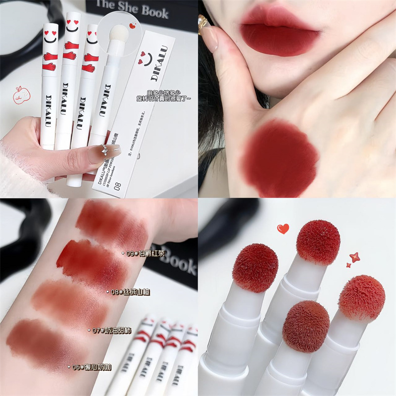 | nameOriginal | DIKALU Plush Air Cushion Lip Cream Mist Matte Lip Glaze Red Lip Mud Lip Cream White Brick Red Lasting |