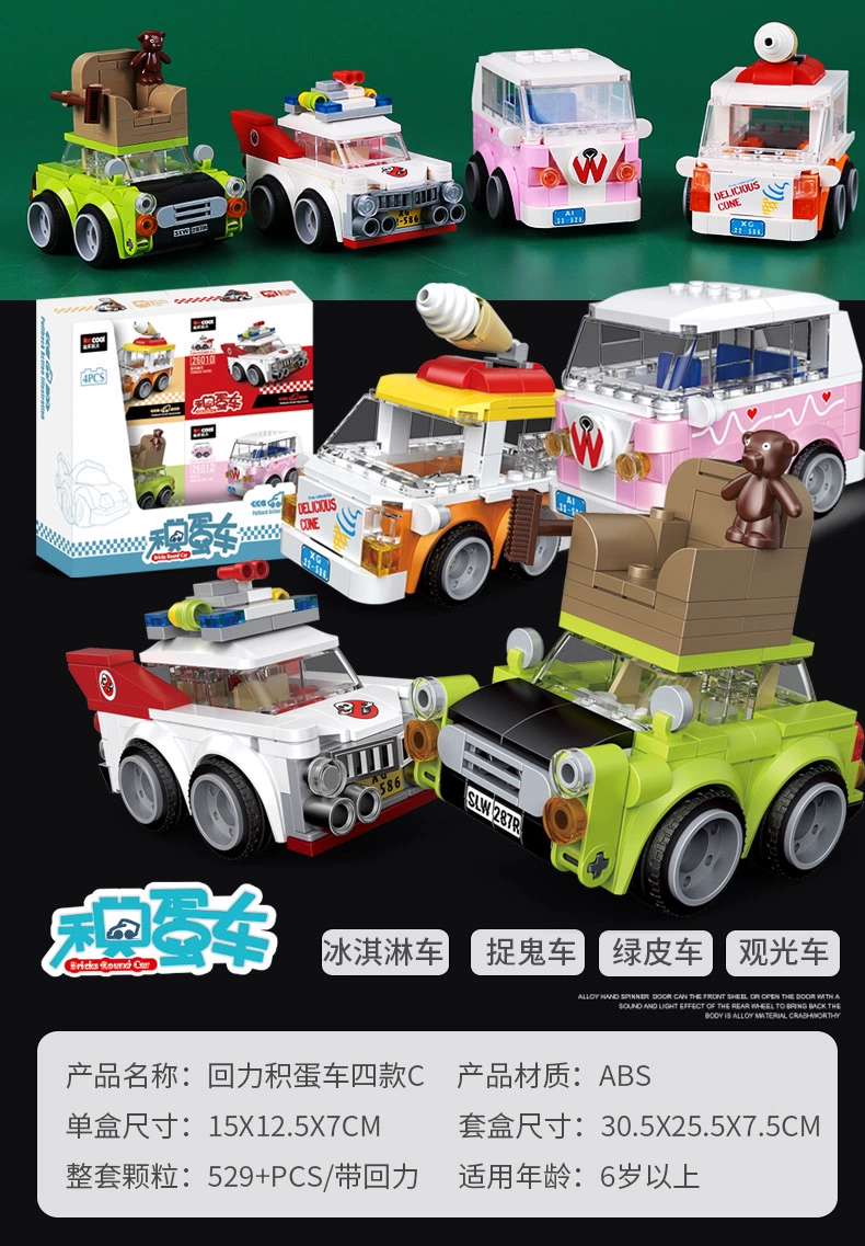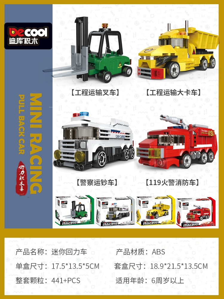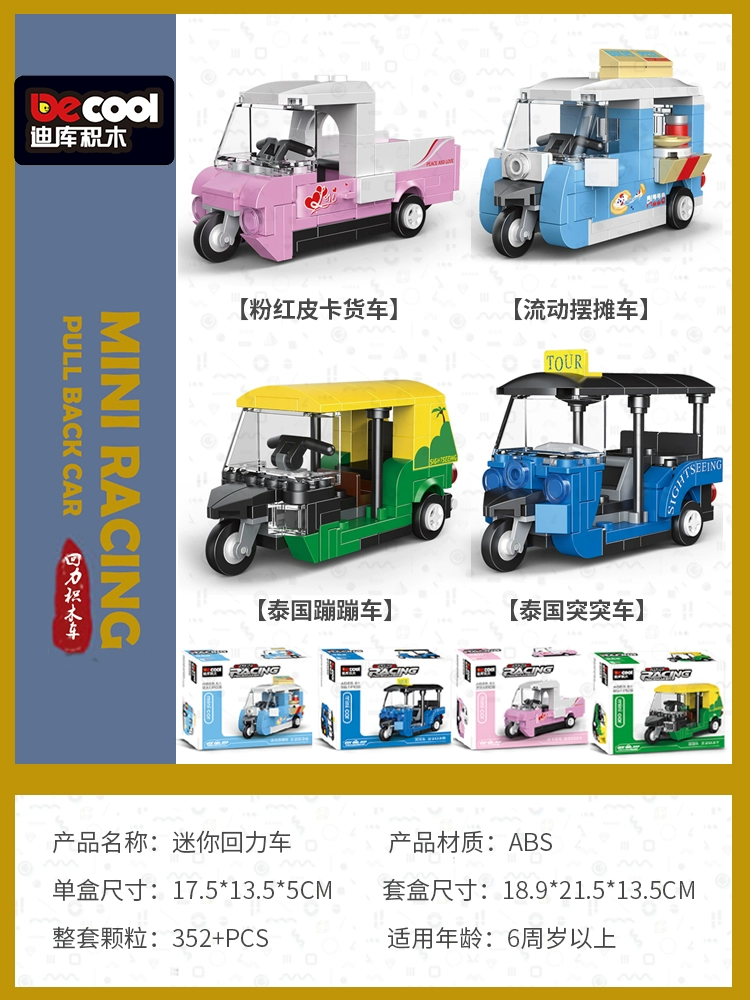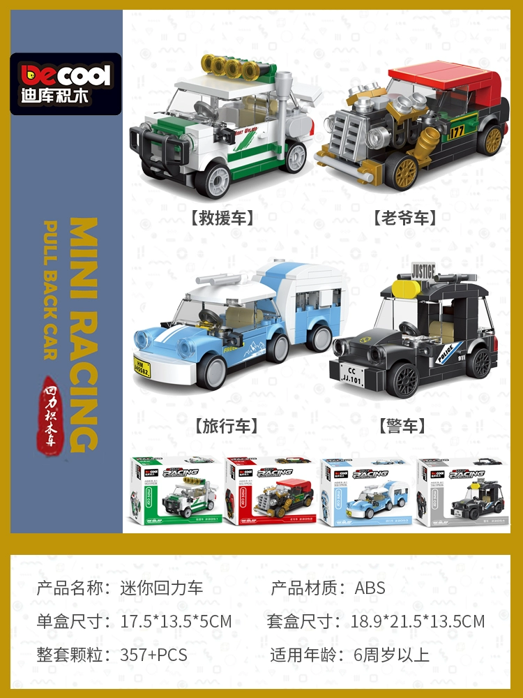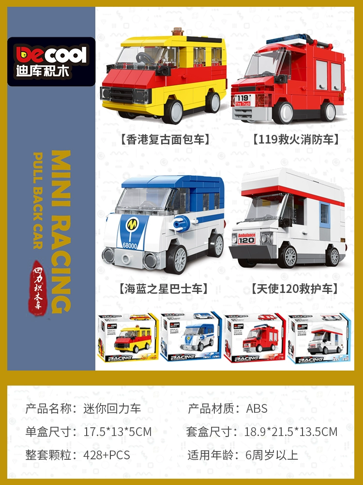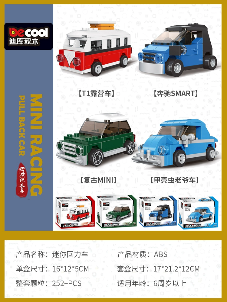 Diku building blocks pull back car educational toy boy assembled sports car mini scooter retro model car for children