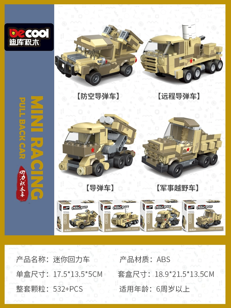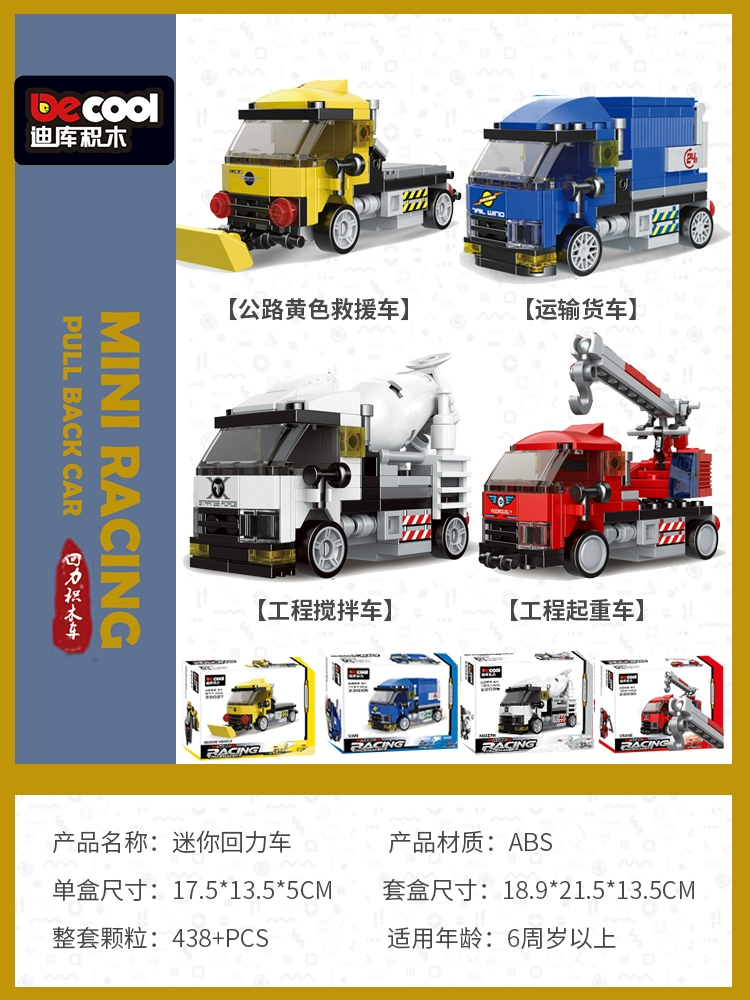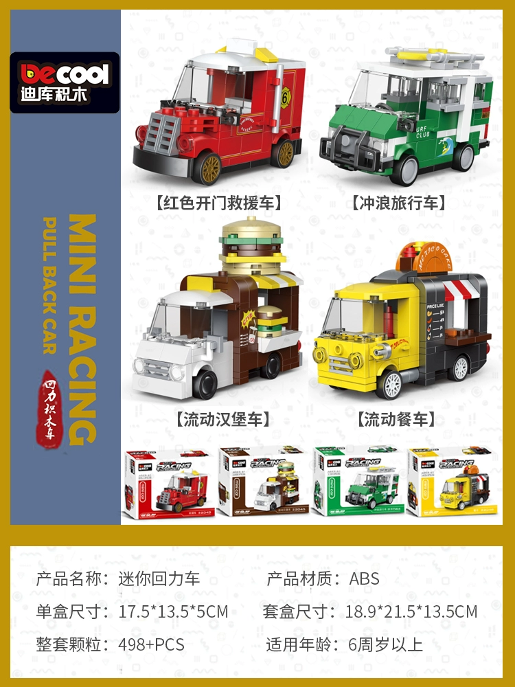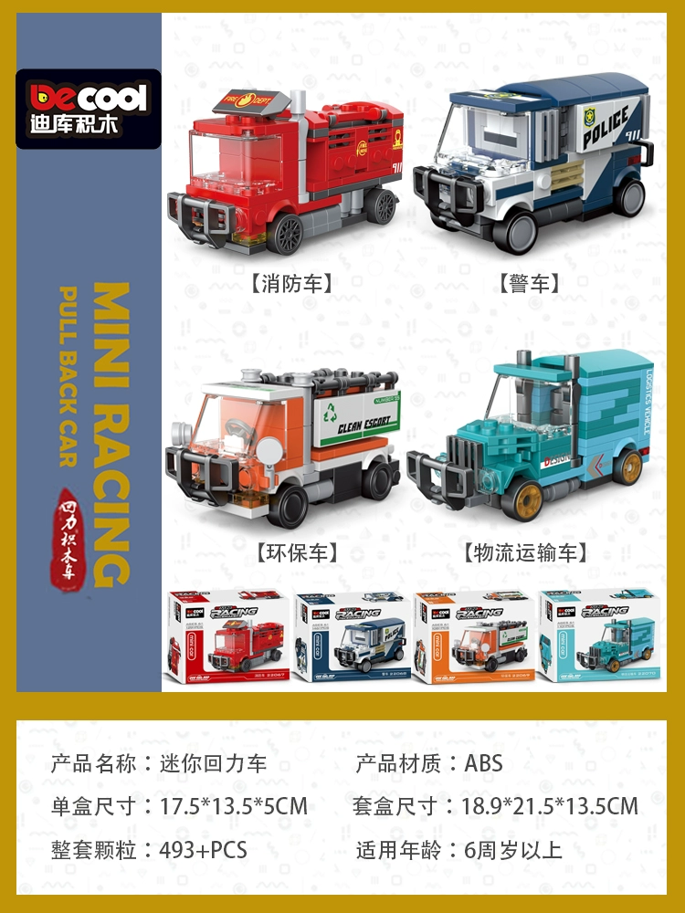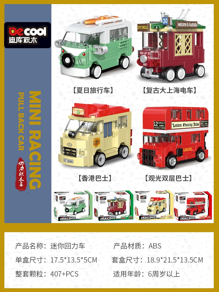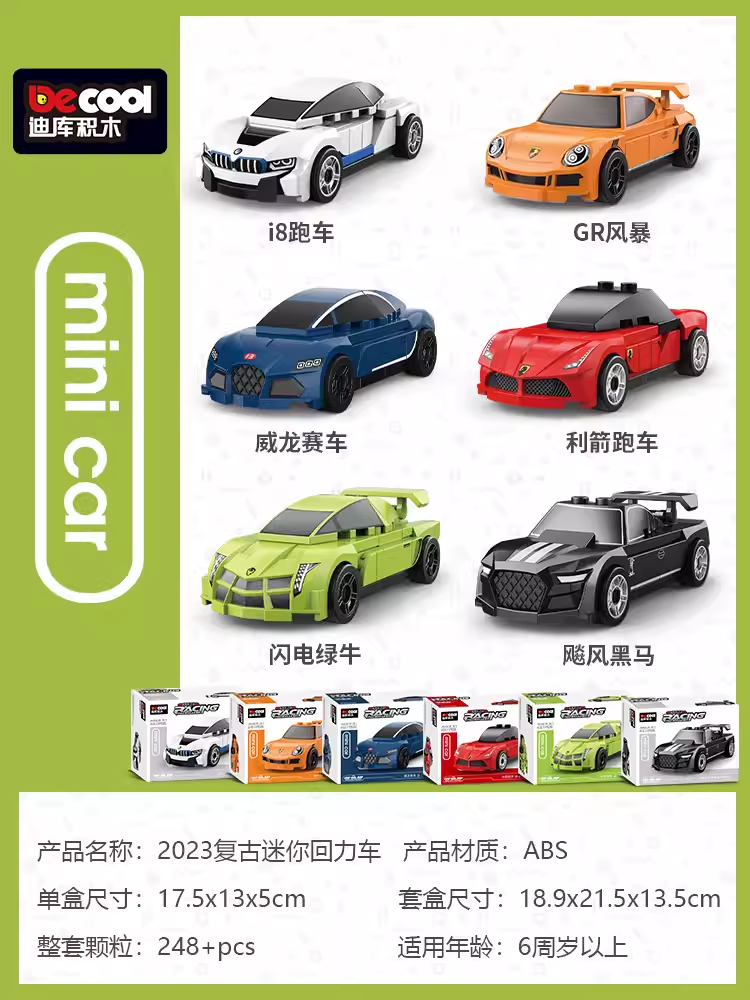 Diku building blocks pull back car educational toy boy assembled sports car mini scooter retro model car for children
