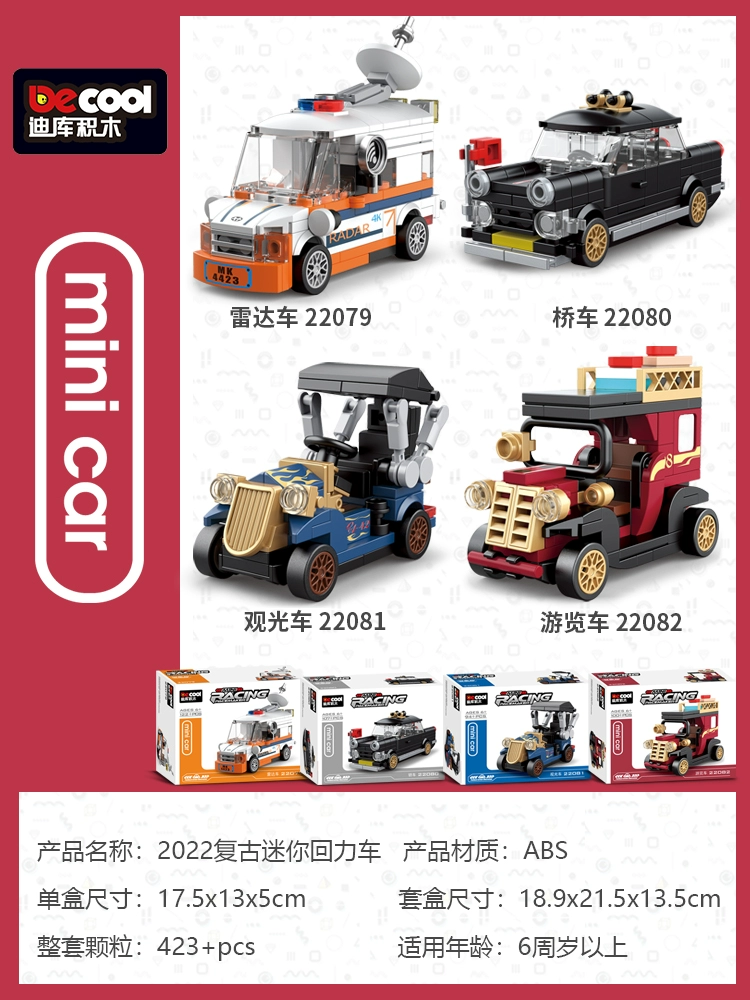 Diku building blocks back to rig car puzzle toy boy assembled sports car mini scooter retro model car children