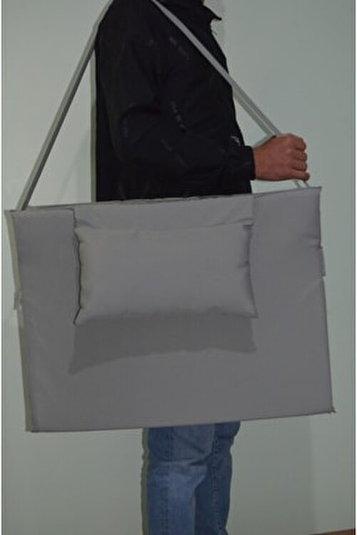 PORTABLE FOLDING BAG CHAISE LOUNGER CUSHION, PADDED CUSHION IS A PRODUCT THAT YOU WILL NOT TAKE WITH YOU ON VACATION, TRIP, CAMPING, PICNIC. WITH ITS FOLDING PORTABLE STRUCTURE, IT PROVIDES GREAT CONVENIENCE BOTH IN TRANSPORTATION AND STORAGE. MADE OF WATERPROOF, DURABLE FABRIC. THERE IS 1 PIECE BEAD SILICONE FILLER CUSHION ON THE HEAD PART. THERE IS 1 PIECE SNAP BELT, WHICH WILL PREVENT OPENING AFTER FOLDING. THIS BELT ALSO ALLOWS YOU TO FIX THE CUSHION TO THE CHAISE LOUNGE. THERE IS ALSO ONE STRAP FOR CARRYING ON THE SHOULDER. OPEN 180X60X2 CM, CLOSED 60X45 CM DIMENSIONS