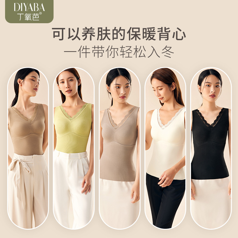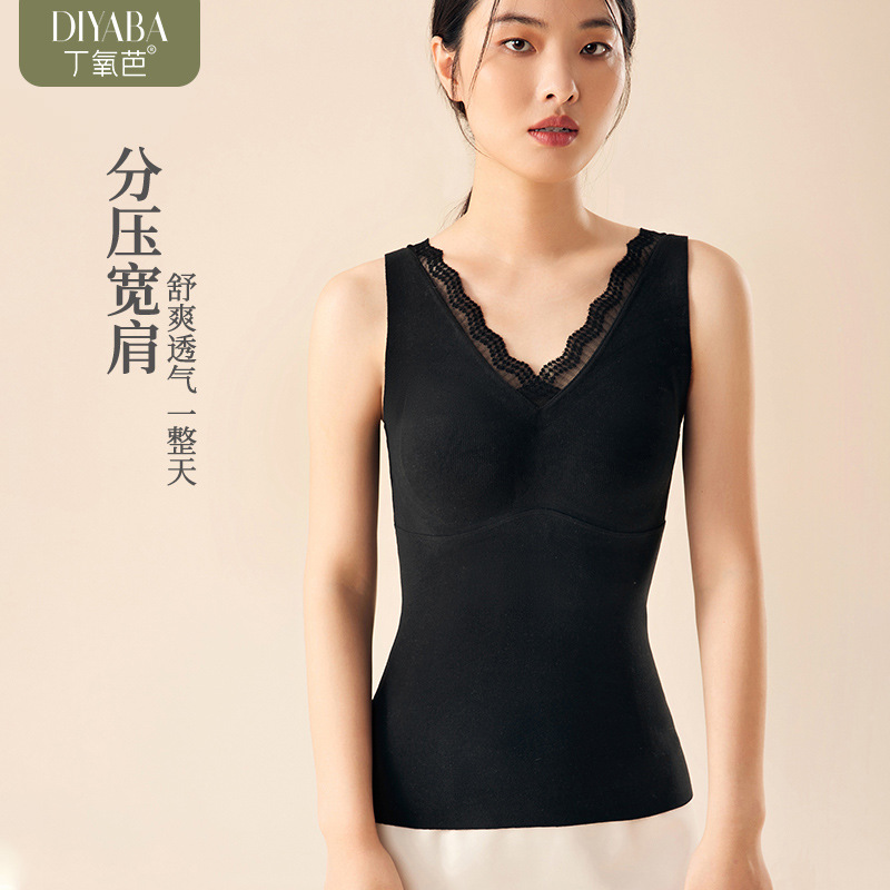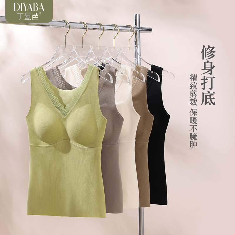 | nameOriginal | Ding Yoba 2023 new cashmere protein thermal vest lace V-neck fixed Cup slim slimming bottoming vest |