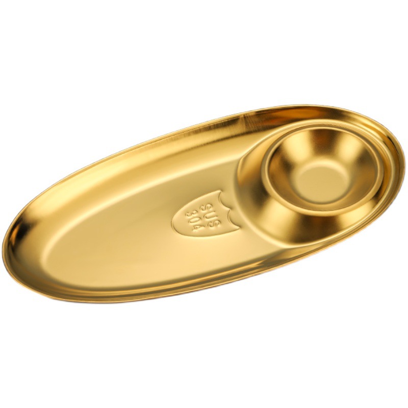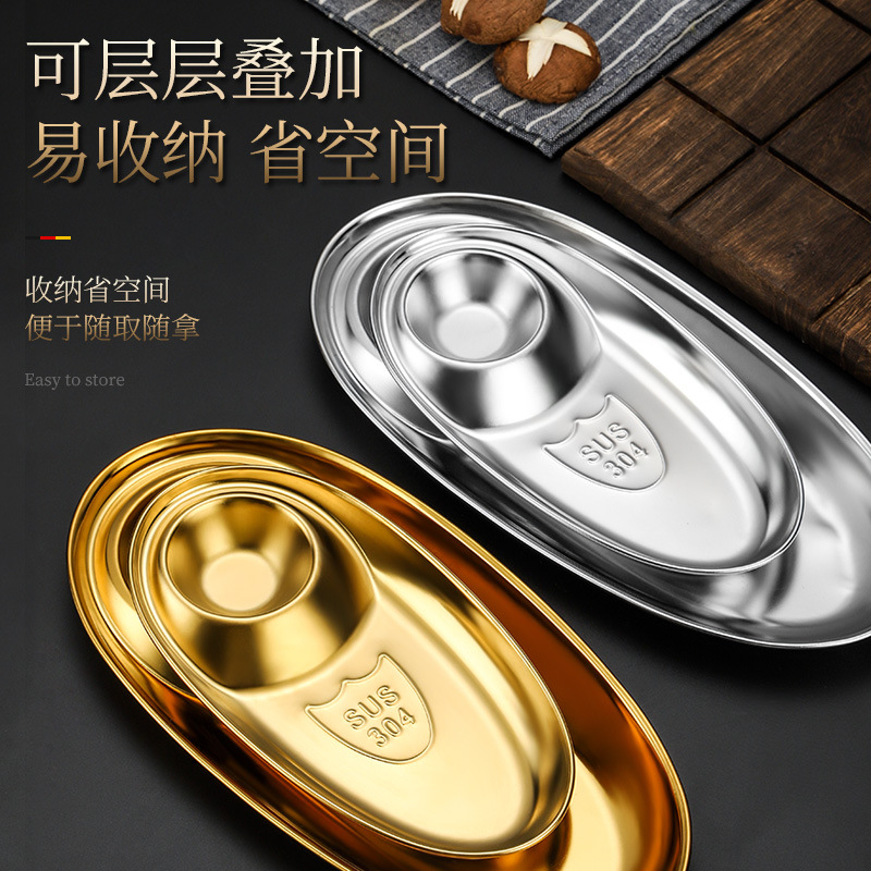 Dinner Plate 304 Stainless Steel Split Plate Korean Snack Plate Oval Gold Snack Plate with Dip Pans Snack Plate