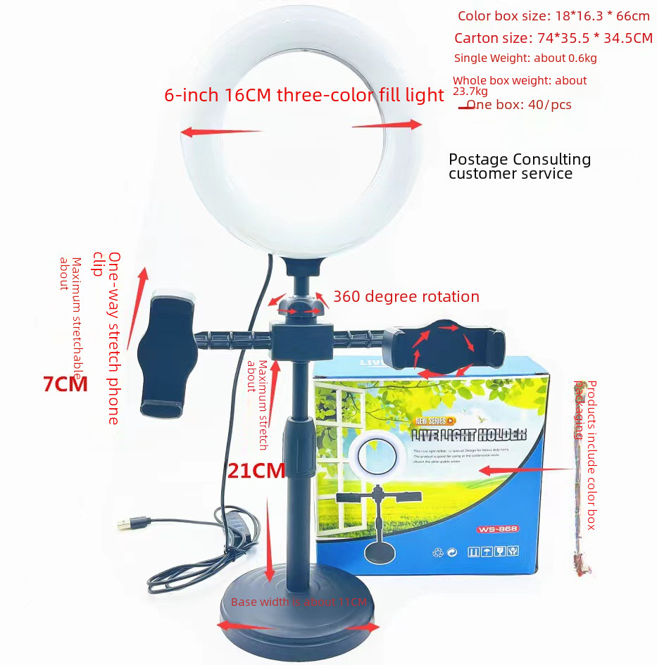 | nameOriginal | Disc desktop dual-camera mobile phone live broadcast bracket 6-inch fill light anchor Internet celebrity beauty selfie portable bracket |