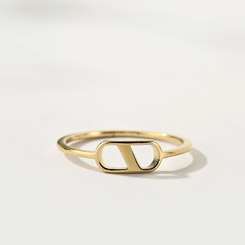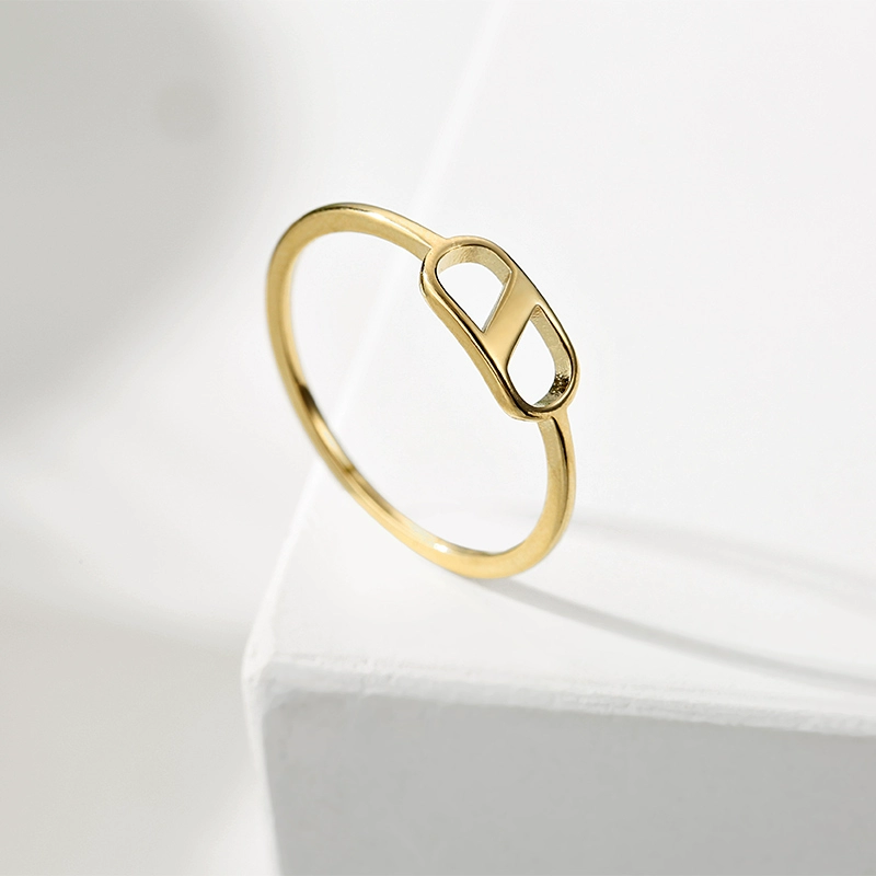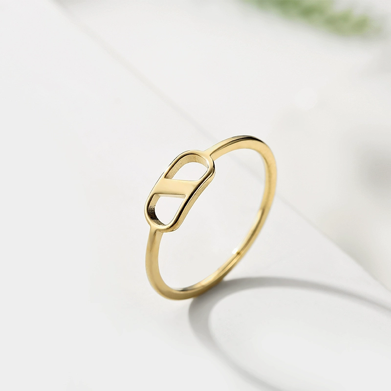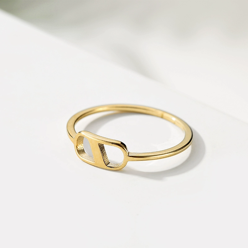 Discounted creative hollow ring 14K gold-plated titanium steel small fresh index finger ring Korean fashion simple matching ring