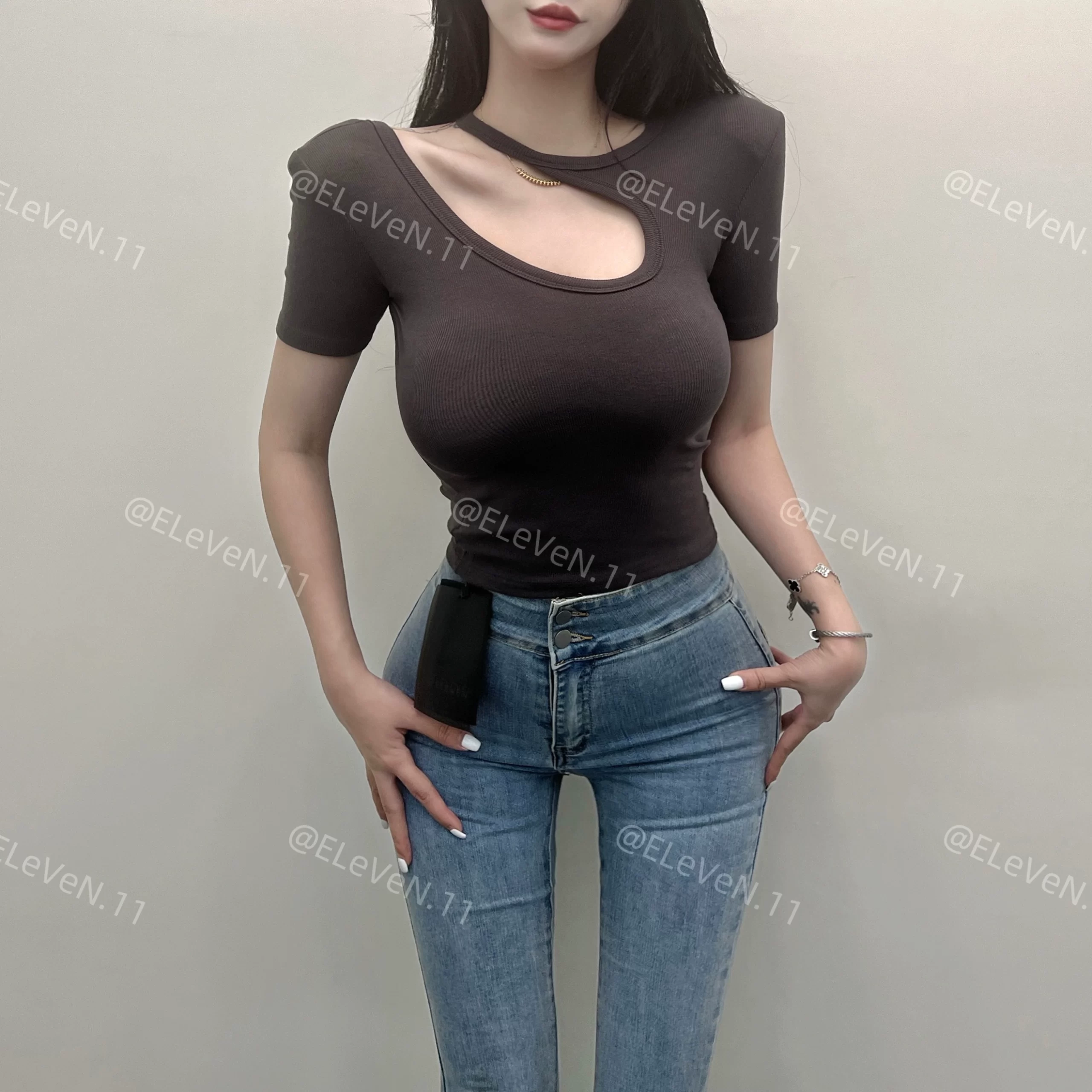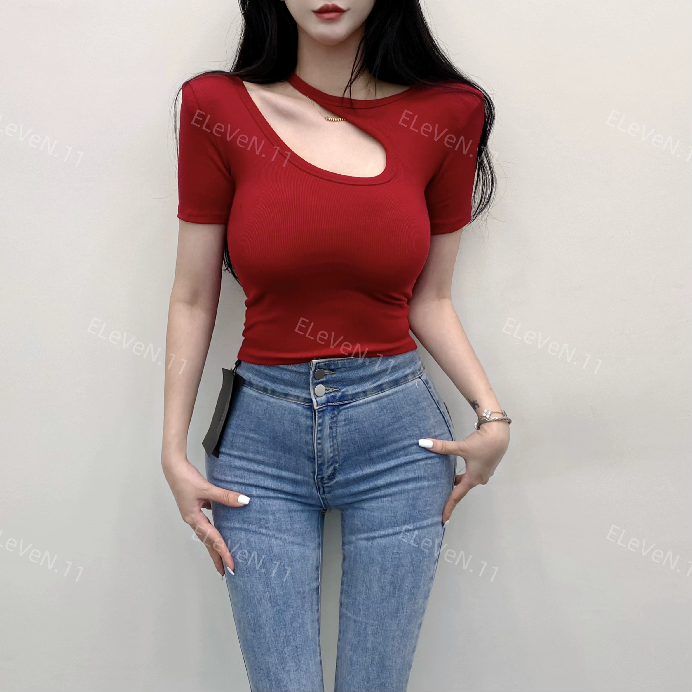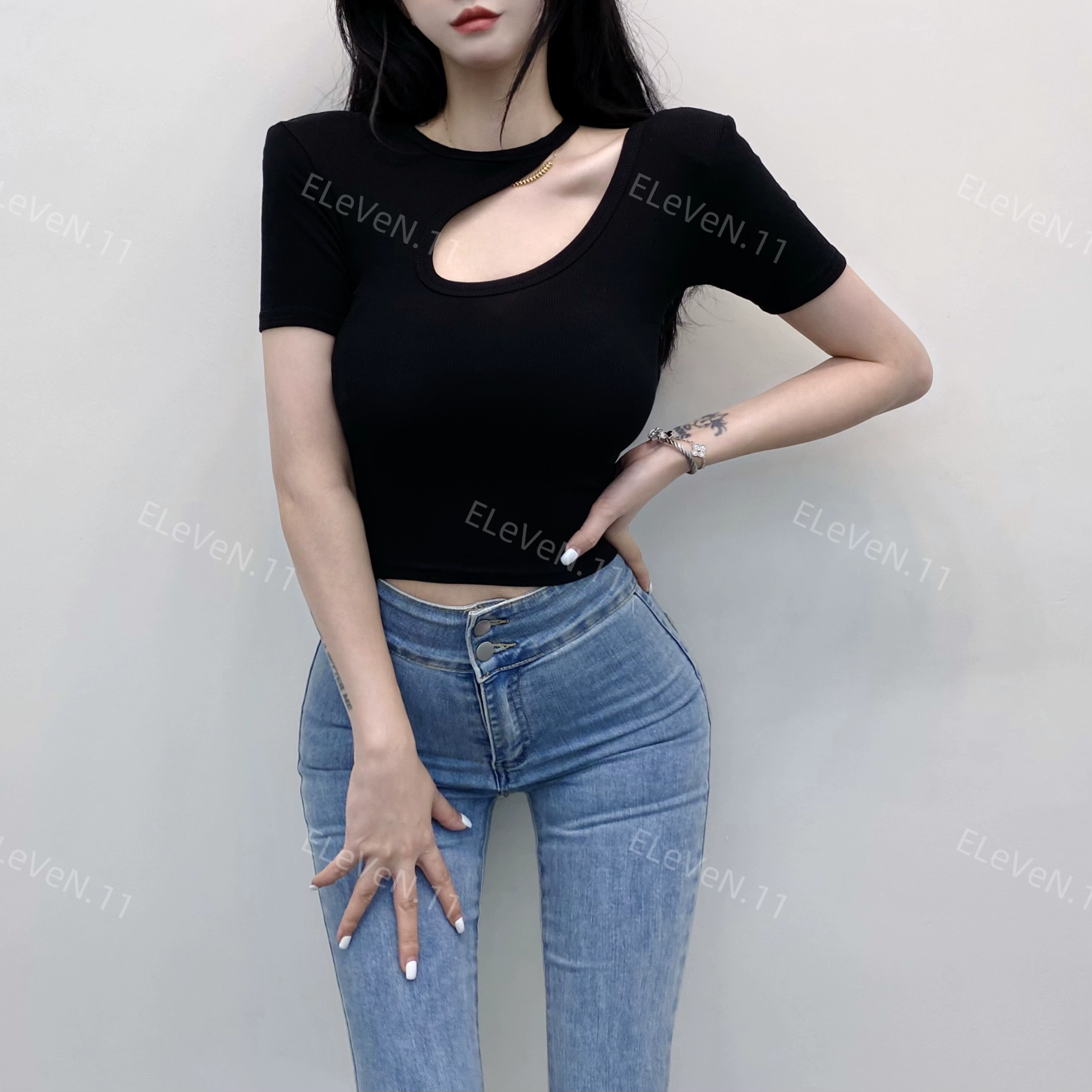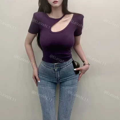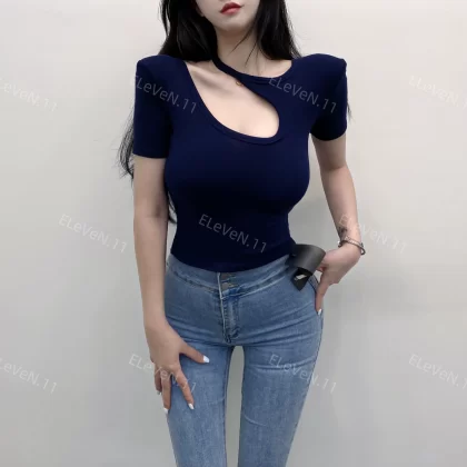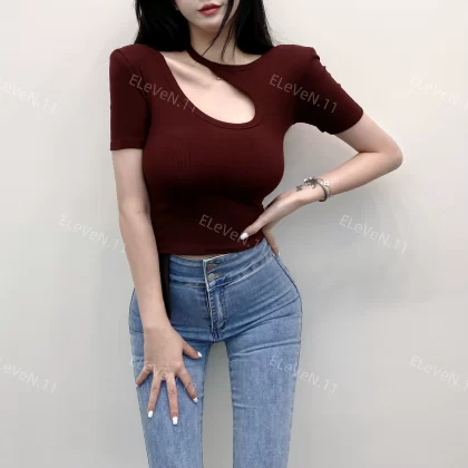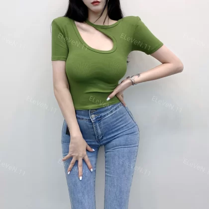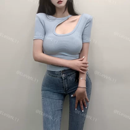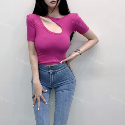 | nameOriginal | Discreet design hollow round neck ins short-sleeved T-shirt |