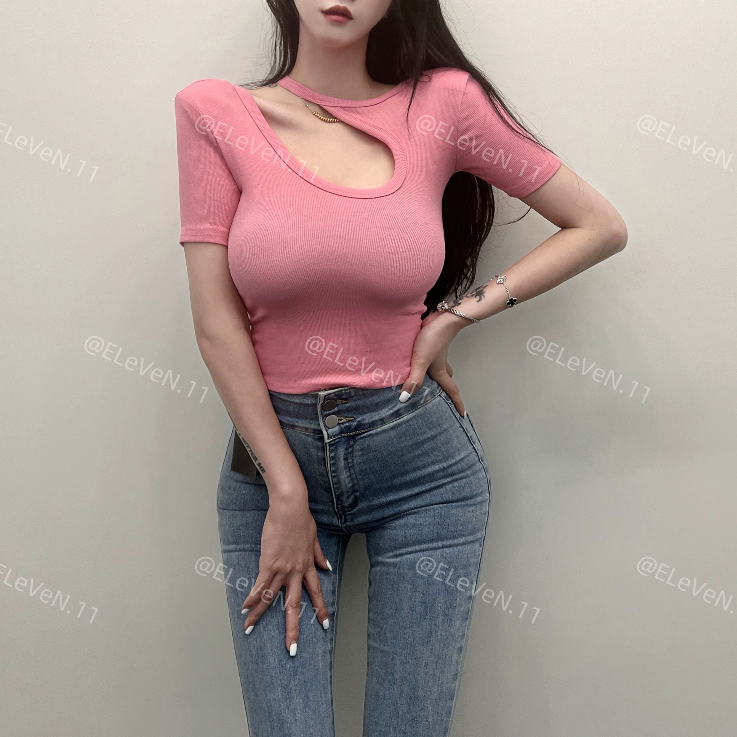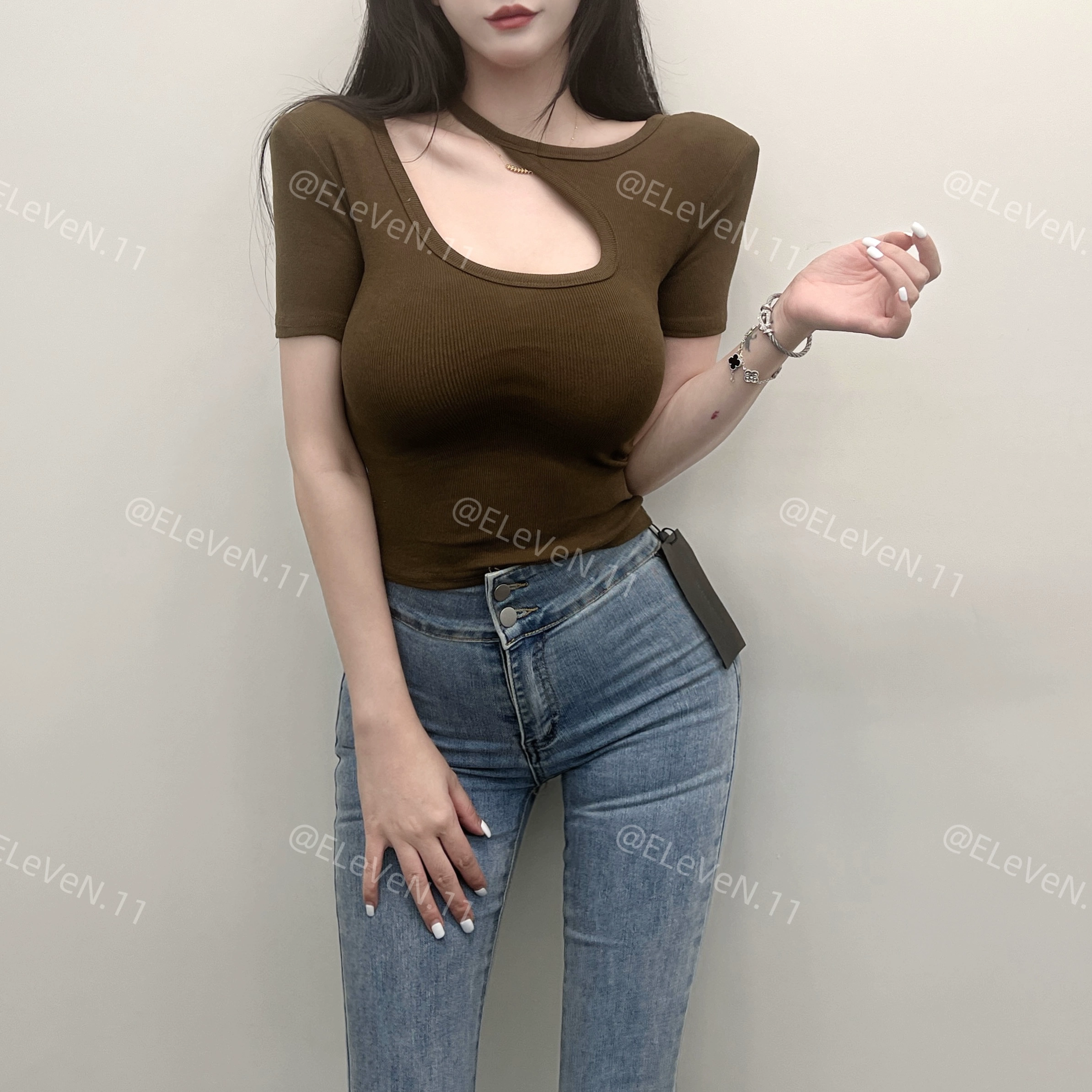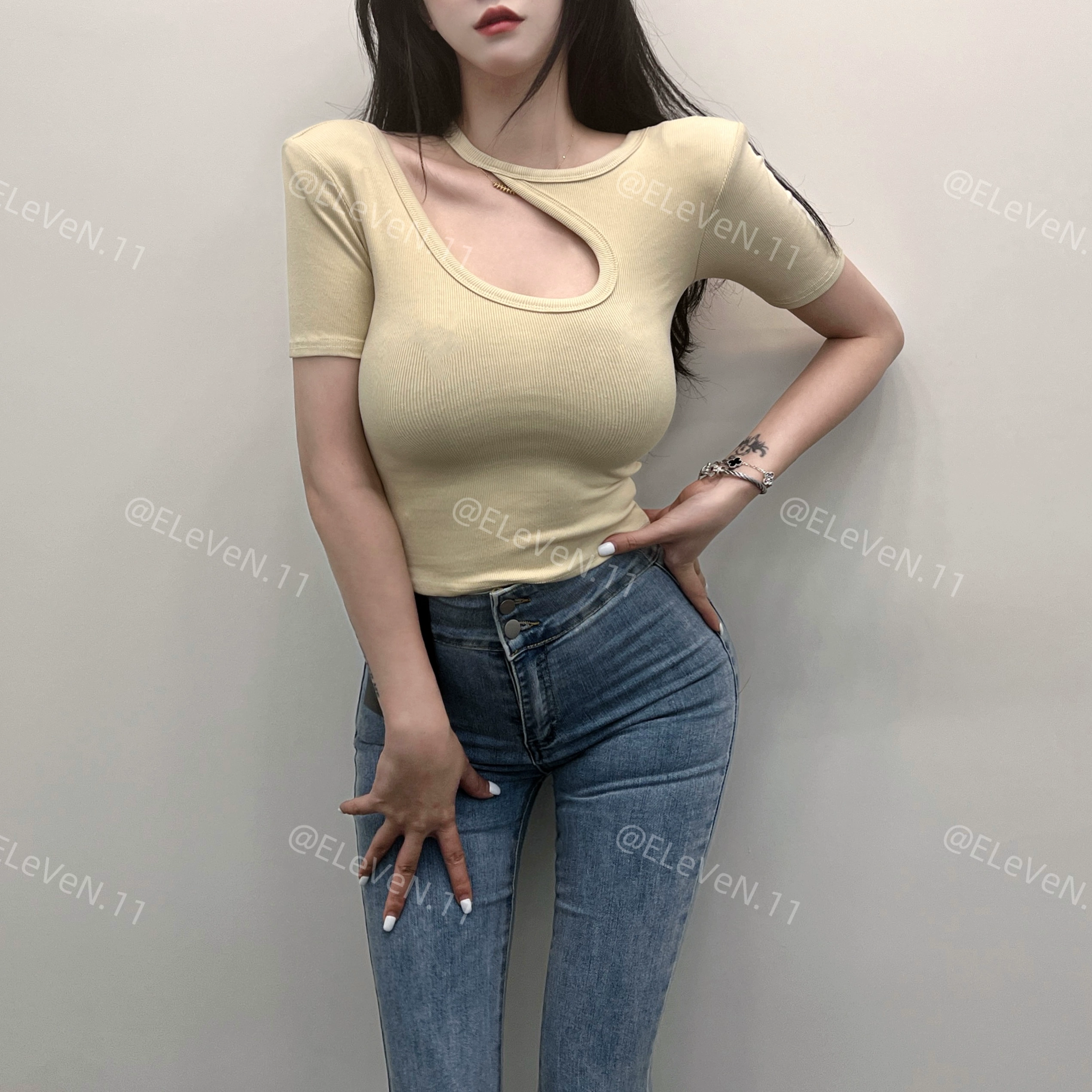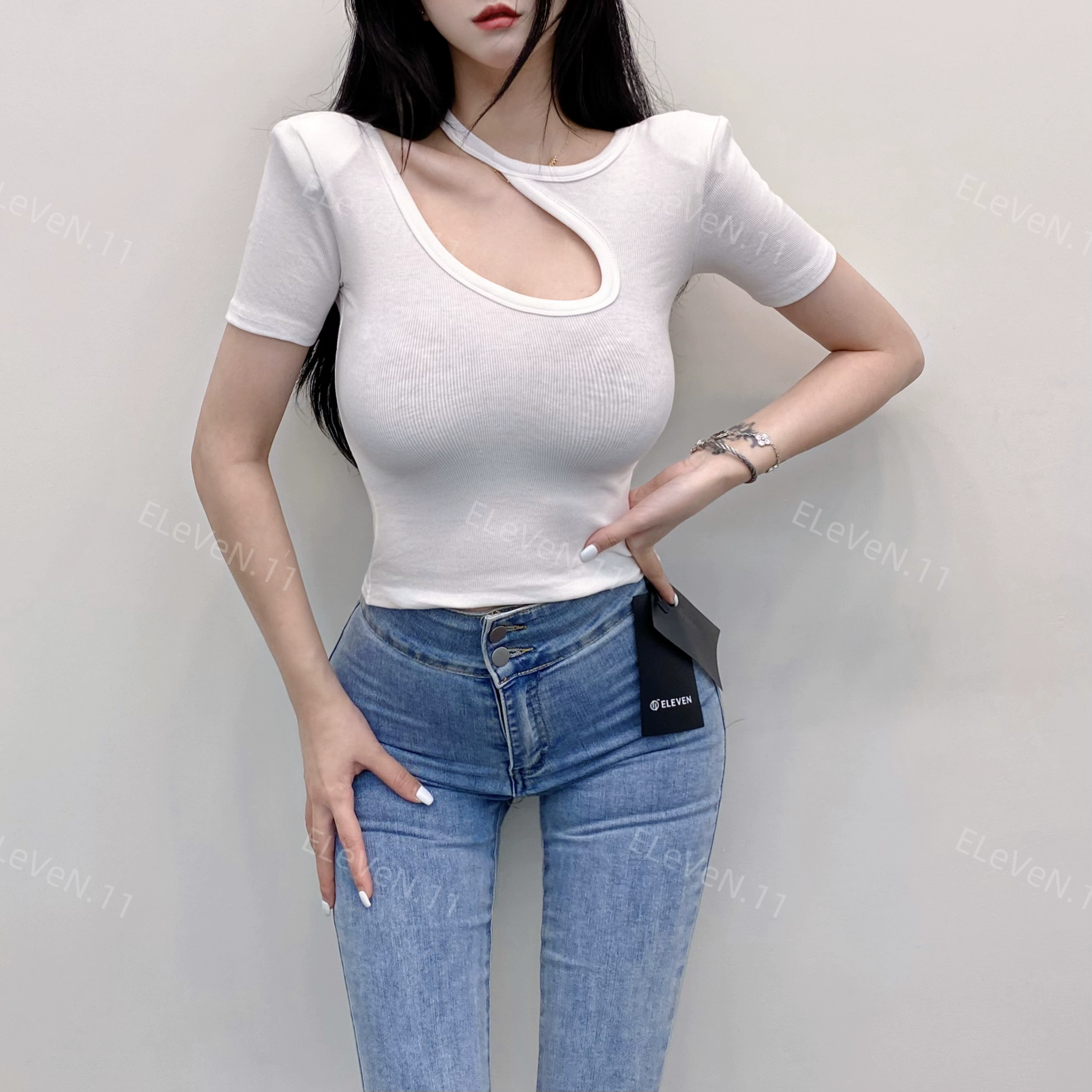 | nameOriginal | Discreet design hollow round neck ins short-sleeved T-shirt |