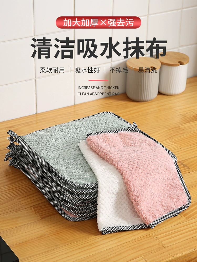 Dishwashing cloth, oil-free, easy to clean, pure cotton rag that absorbs water and does not shed lint, kitchen special dish towel, household cleaning kerchief