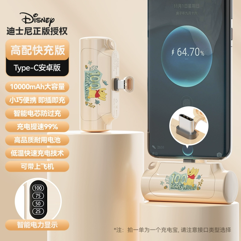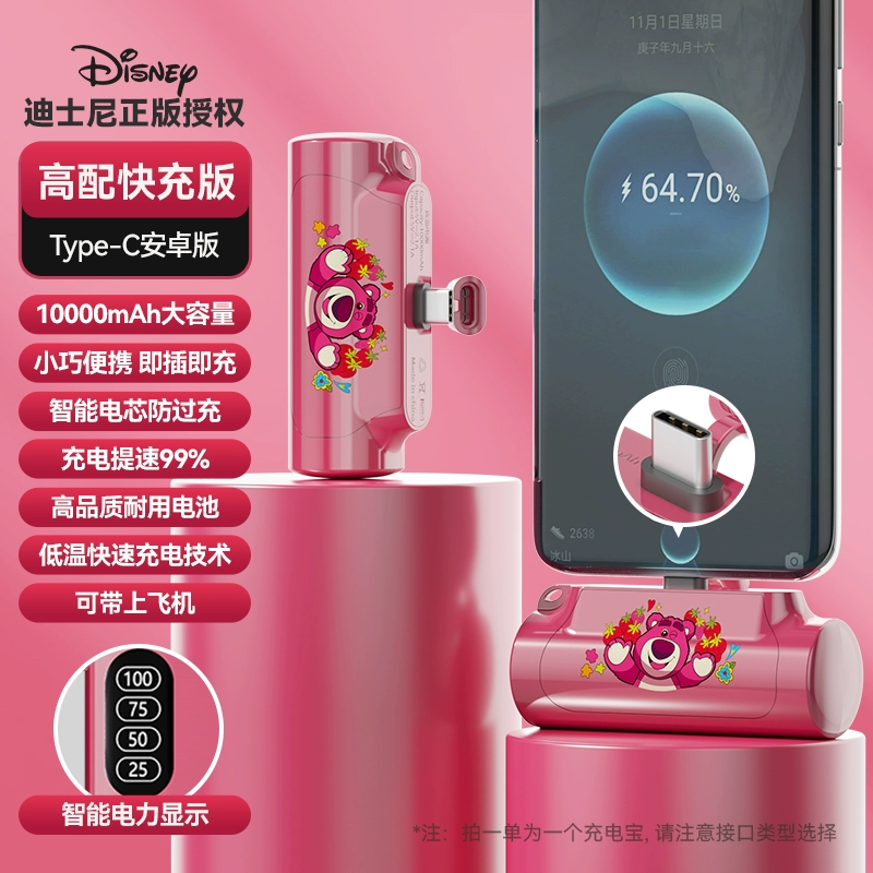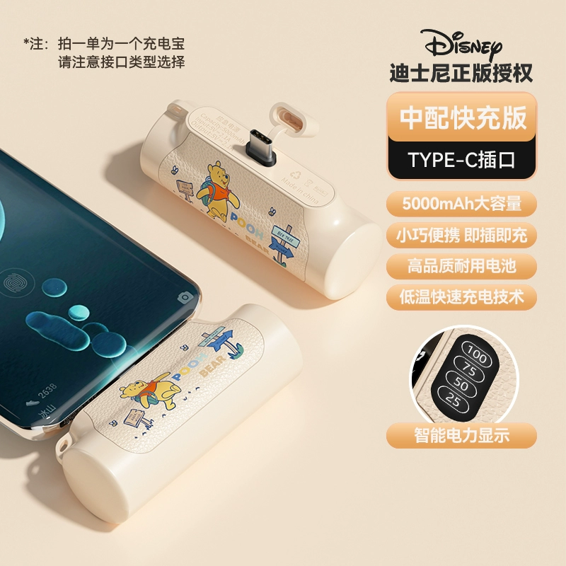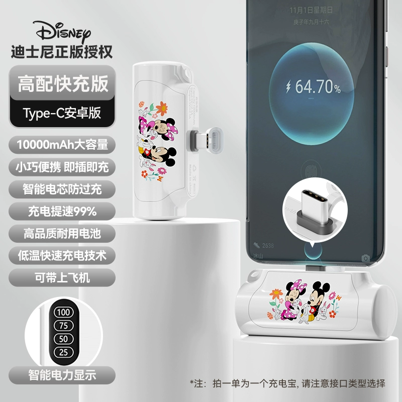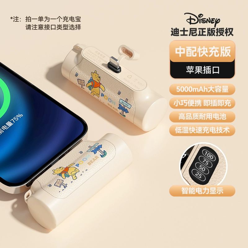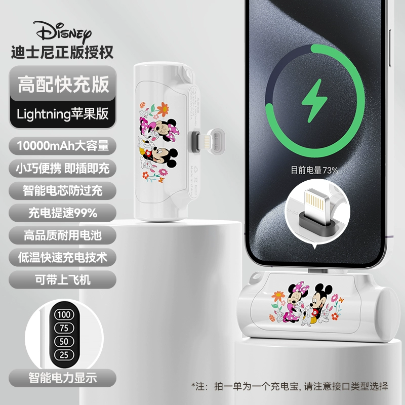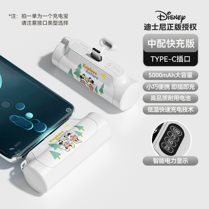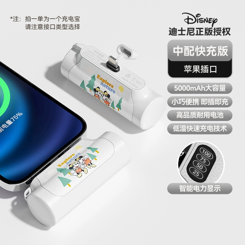 | nameOriginal | Disney capsule power bank with built-in cable, mini, compact and portable, suitable for Apple, Huawei, Xiaomi, Android, universal emergency pocket, lipstick, ultra-thin mobile phone back clip, cute, super large capacity, fast charging |
