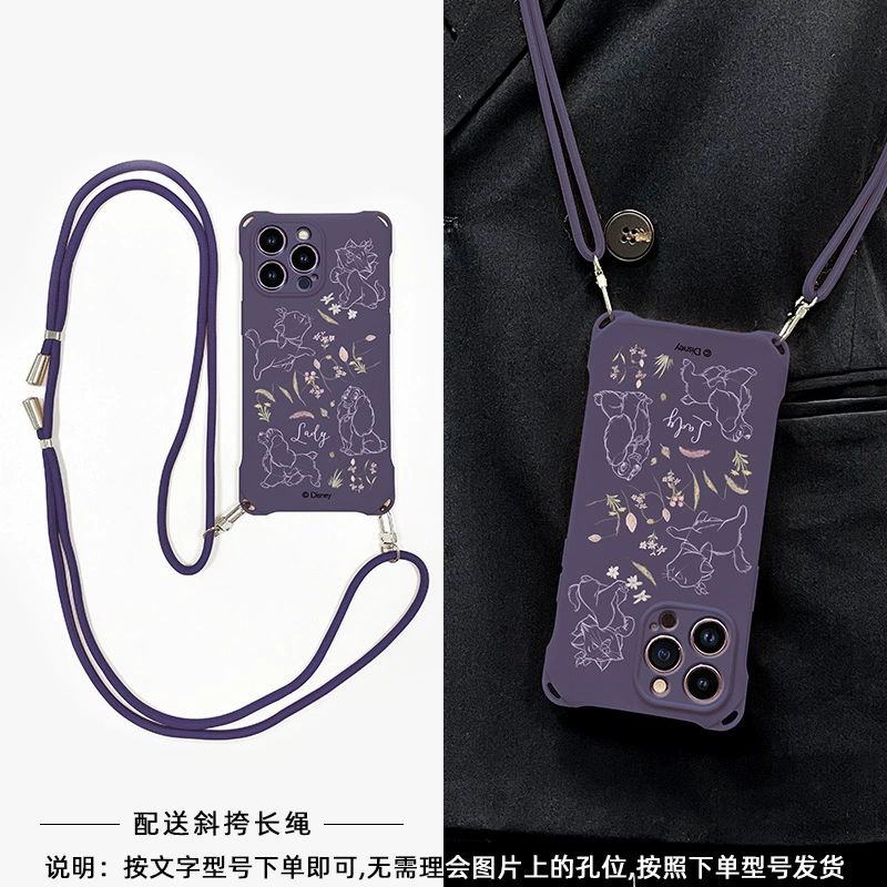 [Disney Genuine] Suitable for Apple 14 mobile phone case Disney all-inclusive iphone15 new crossbody with lanyard 13promax female model 13 silicone anti-fall 14pro creative personality 12
