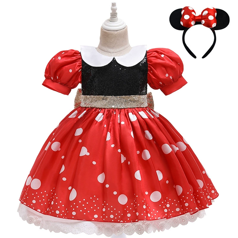 | nameOriginal | Disney Minnie Princess Dress Children's Skirt Girls Dress Summer Hairband Baby First Birthday Dress Red |