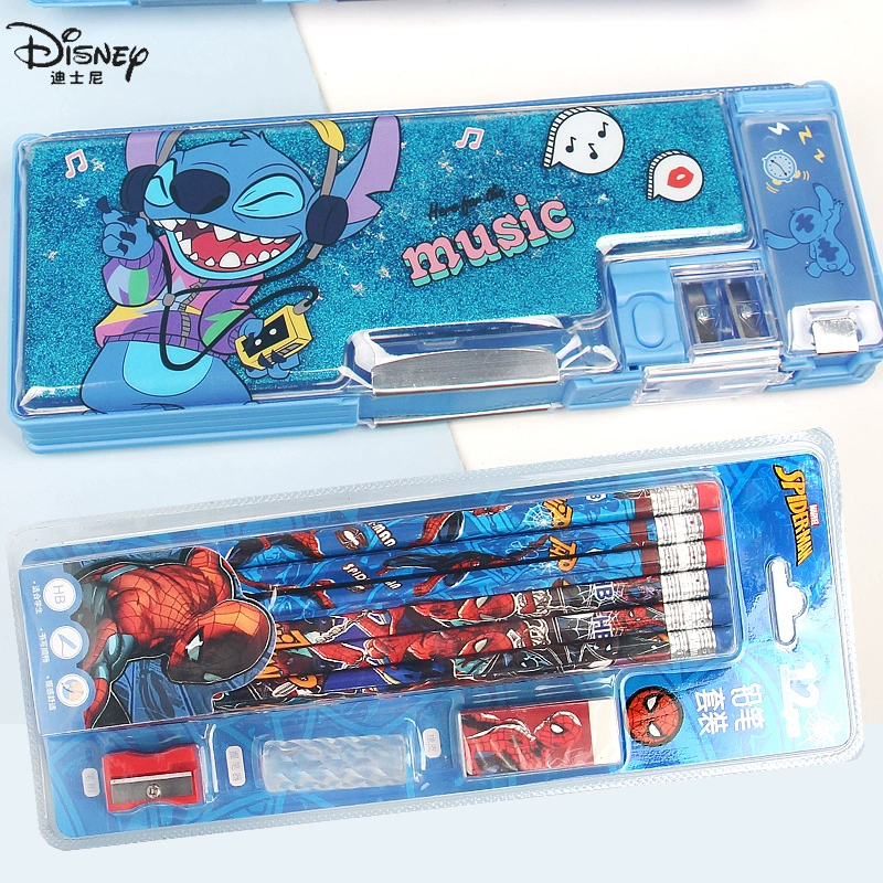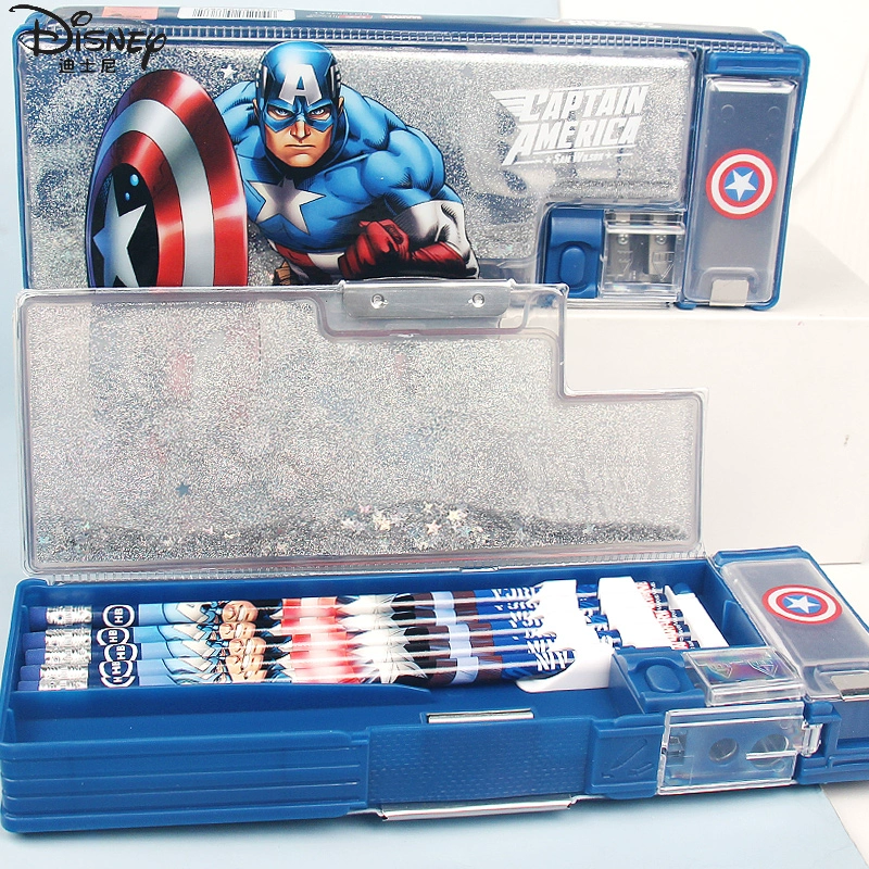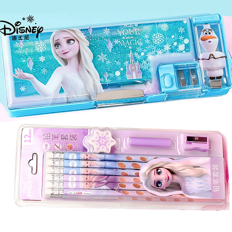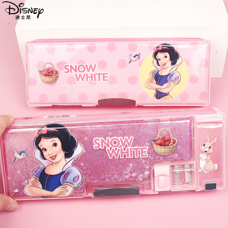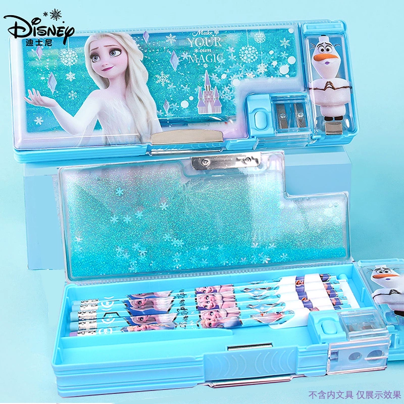 Disney Box Plastic Multifunctional Primary School Student Pencil Box Federal Bingxue Variety Princess Net Red Flowing Sand cute