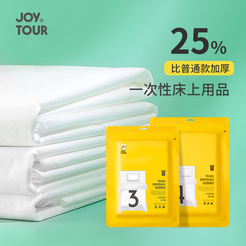 | nameOriginal | Disposable Bed Sheet Quilt Cover Pillowcase Set of Three and Four Towel Bath Towel Hotel Travel Business Suit JoyTour |