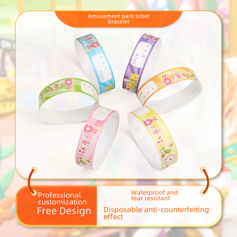 Disposable bracelet custom DuPont paper waterproof children's playground admission ticket activity wristband