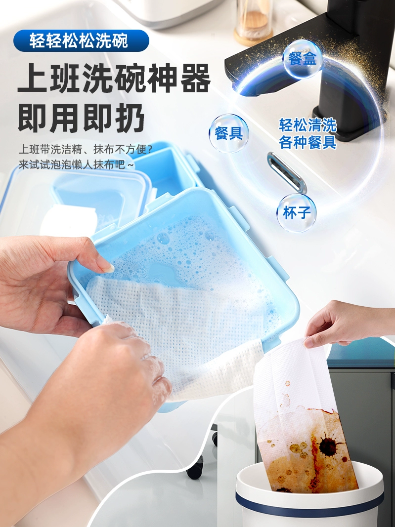 | nameOriginal | Disposable bubble dish towels, wipes with dishwashing liquid, dormitory portable kitchen, lazy artifact degreasing rag |