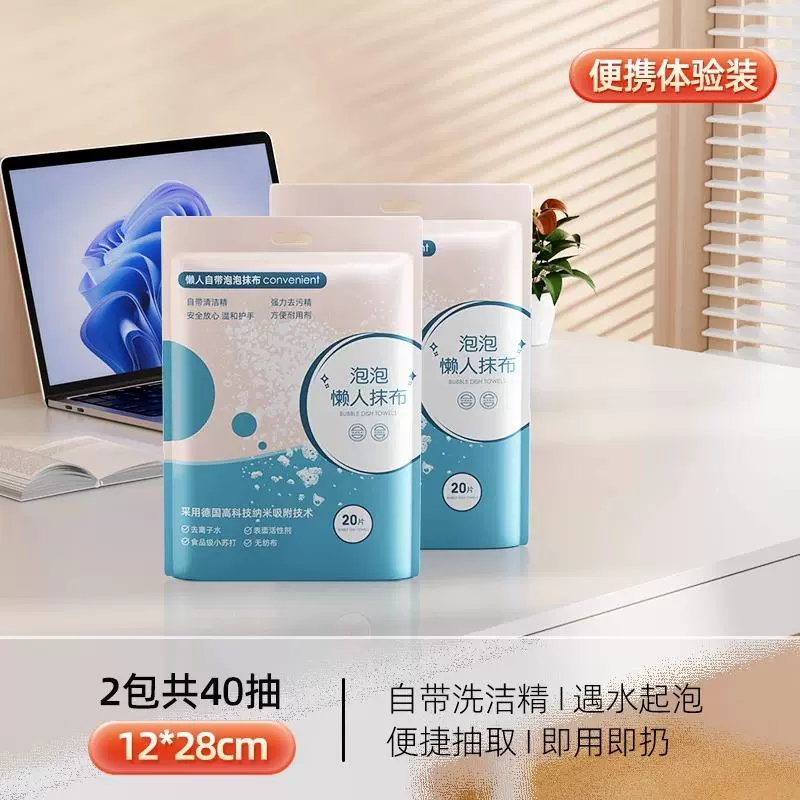 | nameOriginal | Disposable bubble dishcloth, scouring pad, extra thickened dish towel, kitchen paper with concentrated dishwashing liquid |