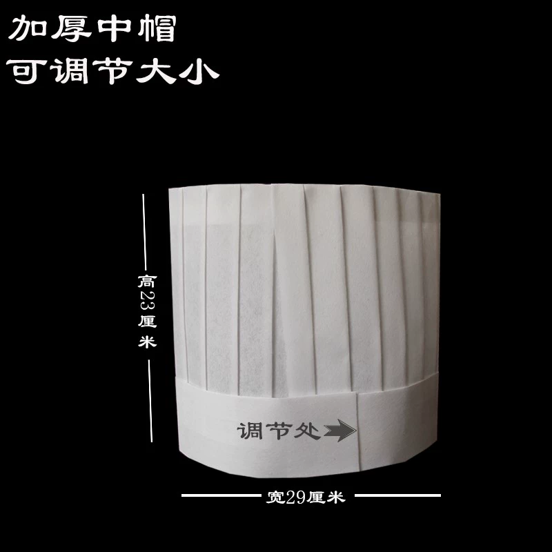 | nameOriginal | Disposable chef hat non-woven chef hat paper hat high hat medium hat men and women kitchen hat thickened work hat |