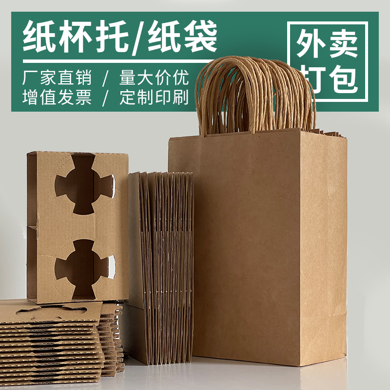 Disposable Coffee Milk Tea Drink Take-away Packing Paper Cup Holder Thickened Corrugated Kraft Paper Double Cup Four Cup Holder Base