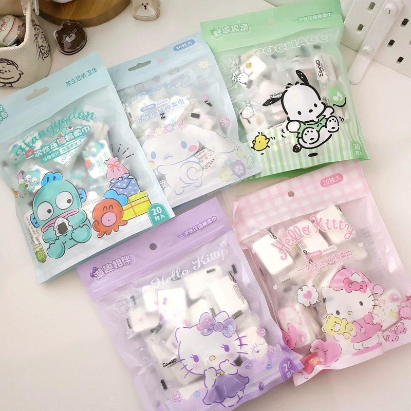 Disposable compressed towel face towel travel supplies portable cute cinnamon pacha dog Hello Kitty Sanrio bag