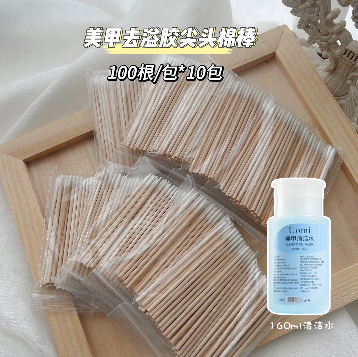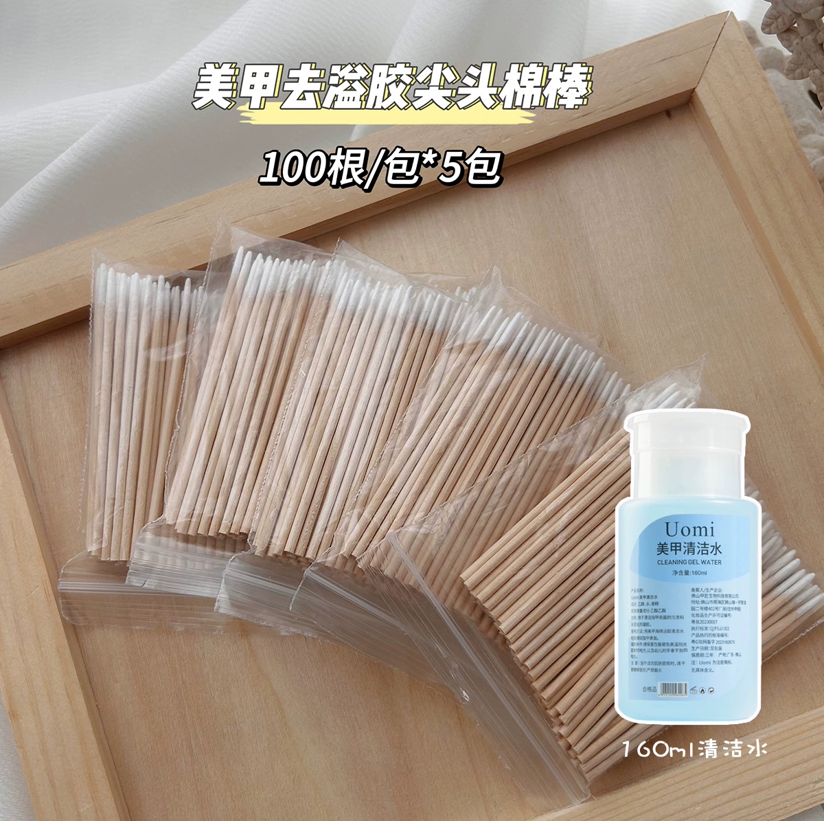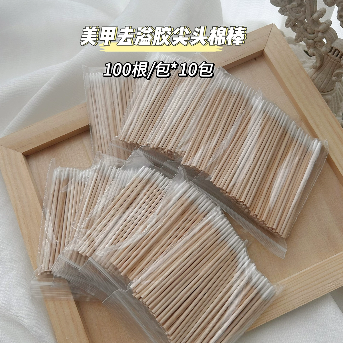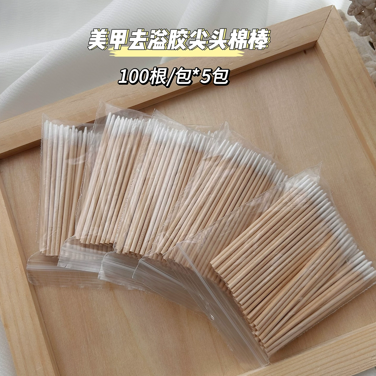 Disposable glue removal, manicure, ultra-fine pointed cotton swabs, wooden nail groove gap dust removal and cleaning cotton swabs, 100 pieces