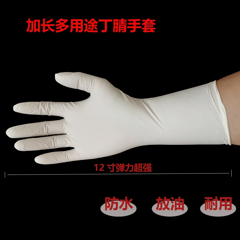 Disposable nitrile rubber gloves, extended, non-slip, hand-fitting, food experiment, housework, kitchen beauty, acid and alkali resistant, durable