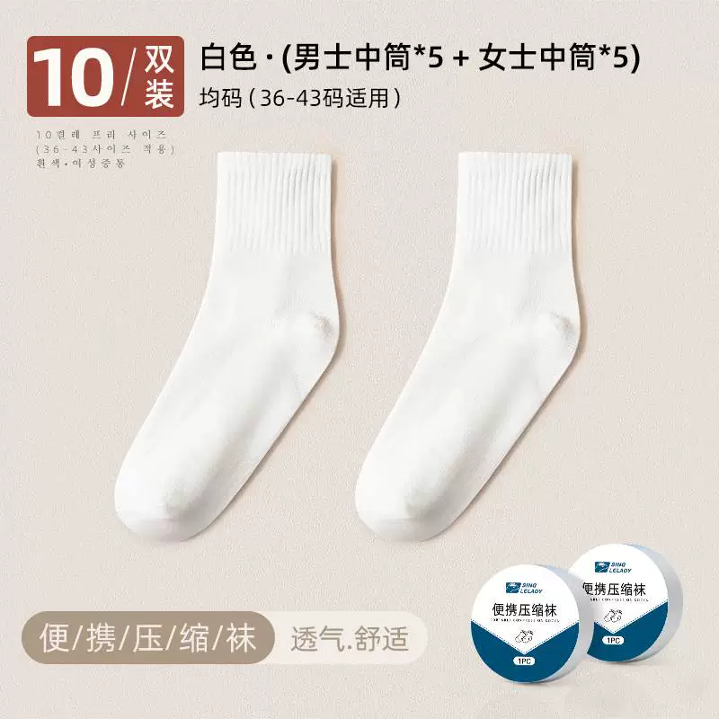 Disposable socks for men and women, no-wash travel daily disposable breathable sports socks, compression socks, long socks, travel mid-calf socks