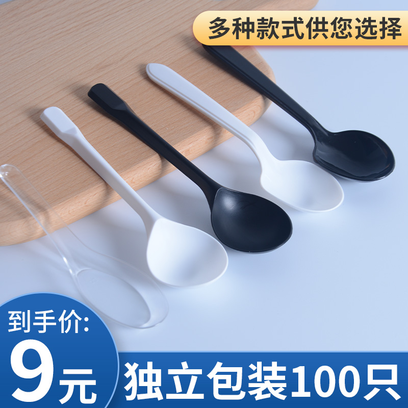 | nameOriginal | Disposable spoon individually packaged plastic soup spoon takeaway spoon portable ice cream dessert cake commercial thickening |