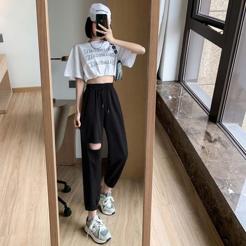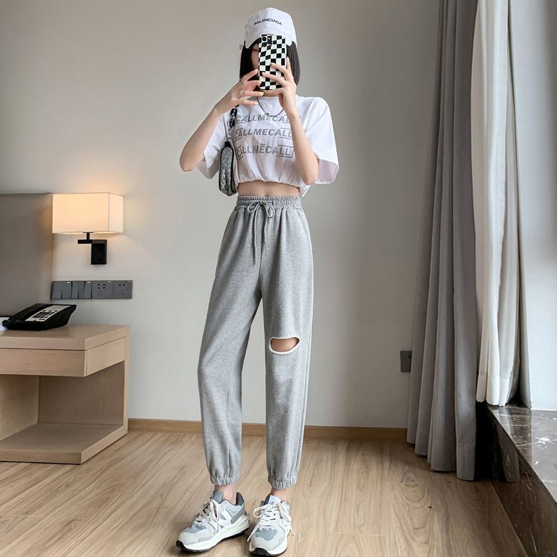 | nameOriginal | Distinctive Ripped Grey Sports Pants Women's Spring and Autumn New Arrival Tall Casual Sweatpants for Small Men Slimming Hallen Pants |