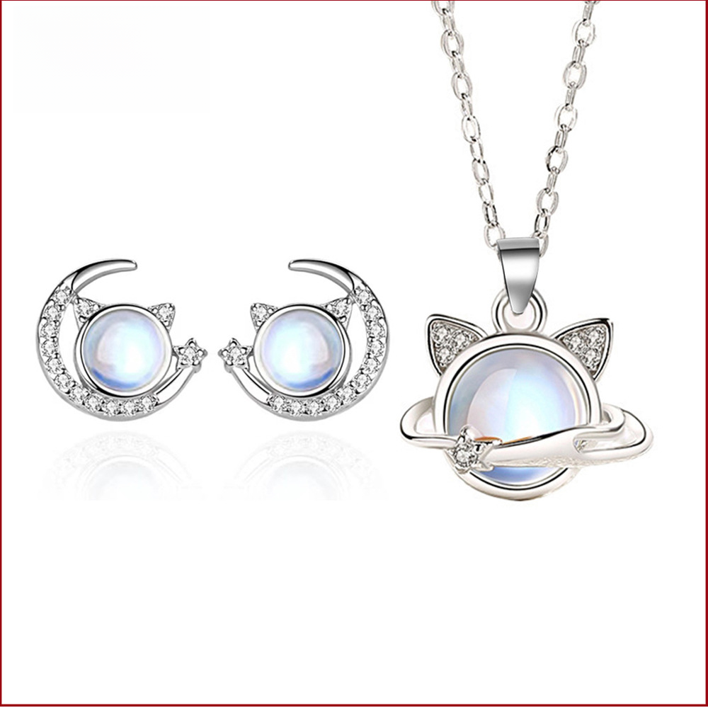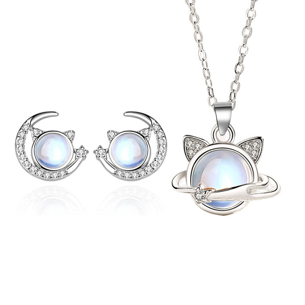 | nameOriginal | Distinctive Star Cats Earrings Necklace Set Women's Cute Sweet Kitten Advanced Clavicle Chain Moon Cat Earrings |
