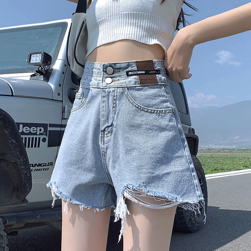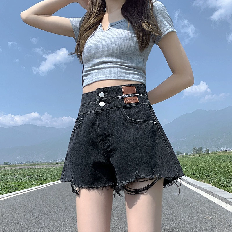 | nameOriginal | Distressed double-button high-waisted A-line loose denim shorts |