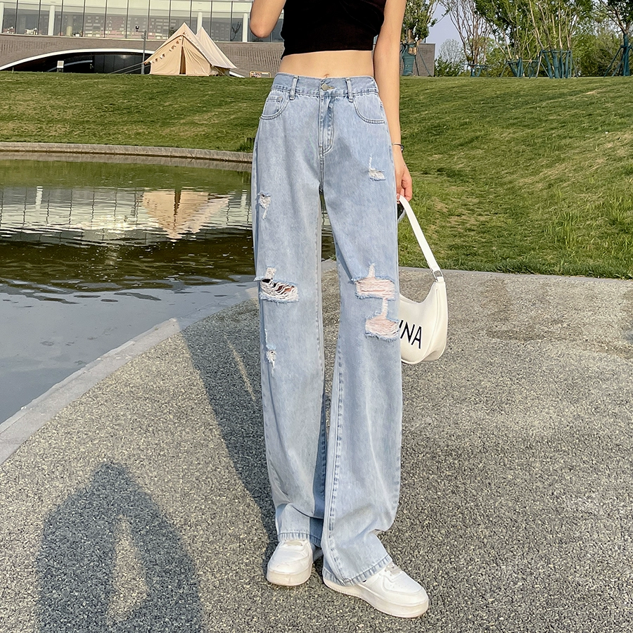 | nameOriginal | Distressed elastic waist straight leg draped cropped jeans |