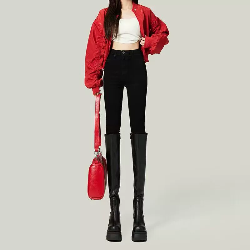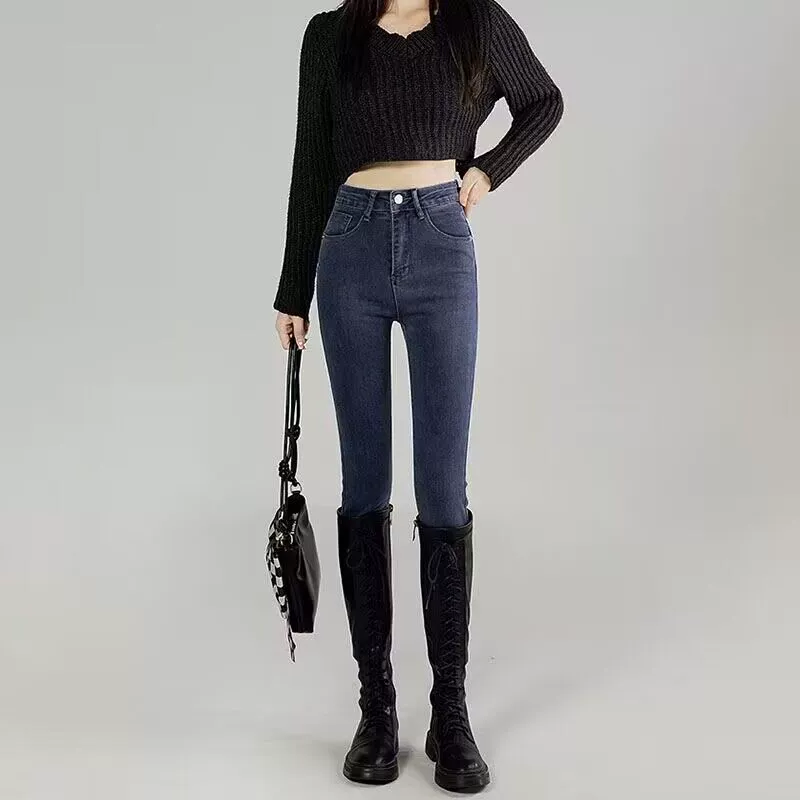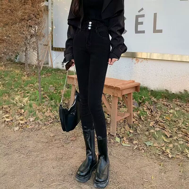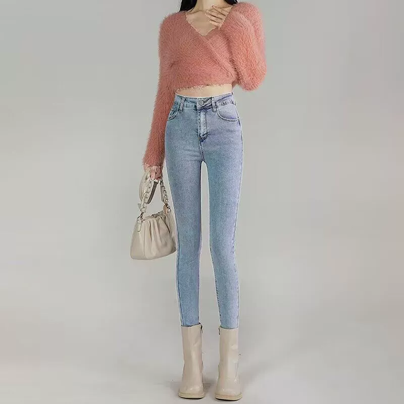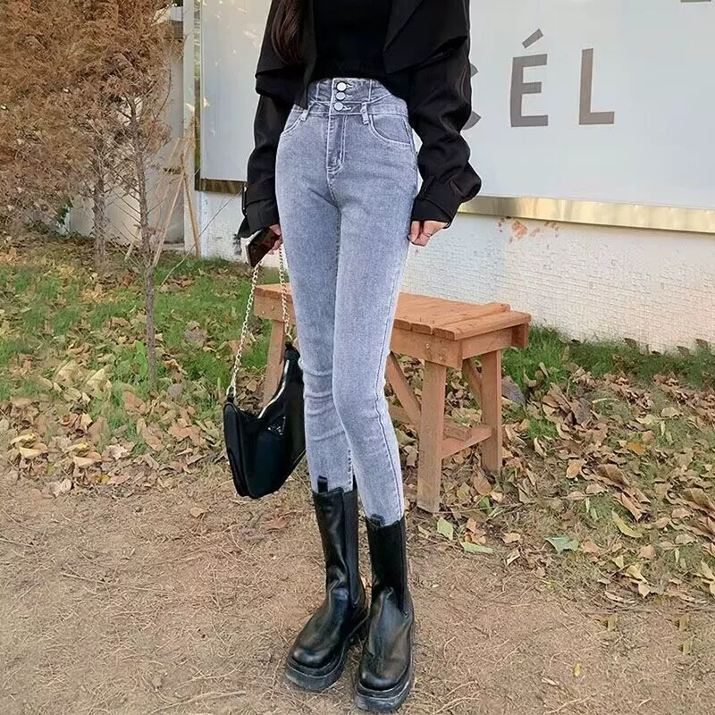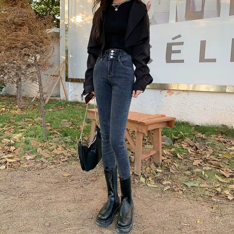 | nameOriginal | Distressed High Waist Double Button Korean Style Slim Fit Cropped Jeans |