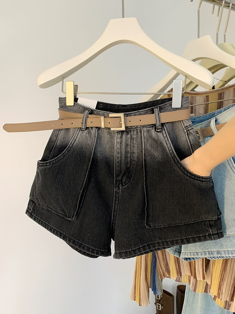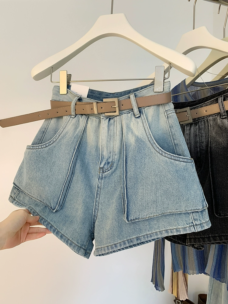 | nameOriginal | Distressed high-waisted A-line wide-leg hot pants overalls with large pockets |