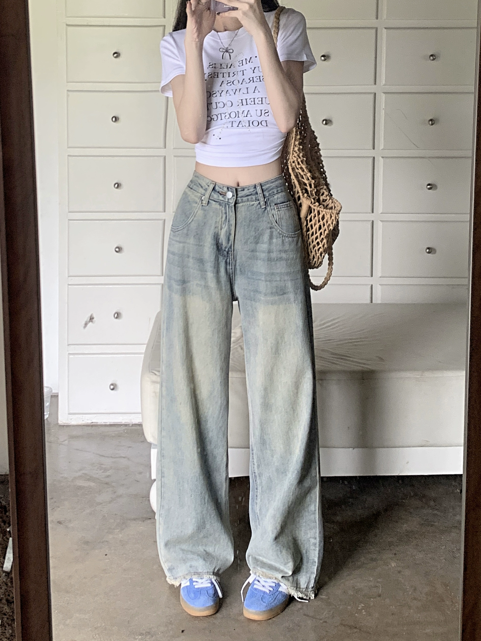 | nameOriginal | Distressed high-waisted loose slimming floor-length raw edge jeans |