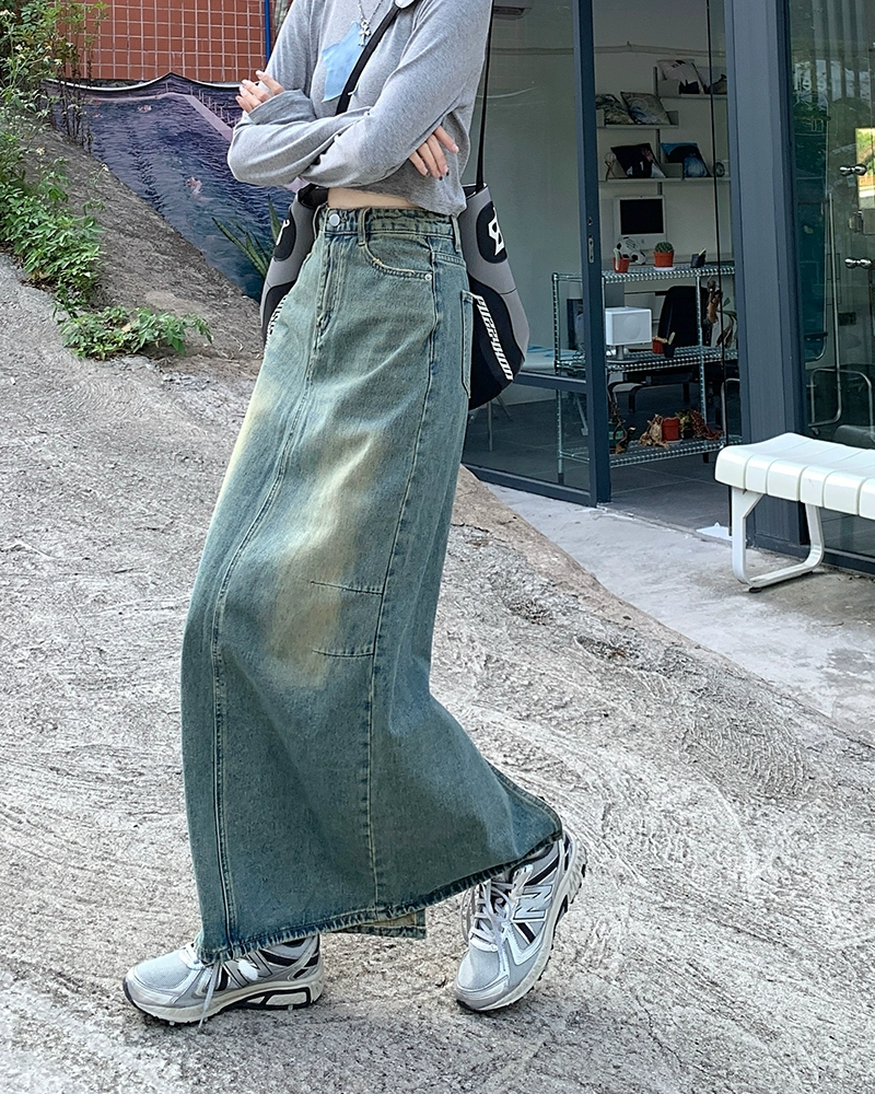 | nameOriginal | Distressed light color back slit petite denim skirt |