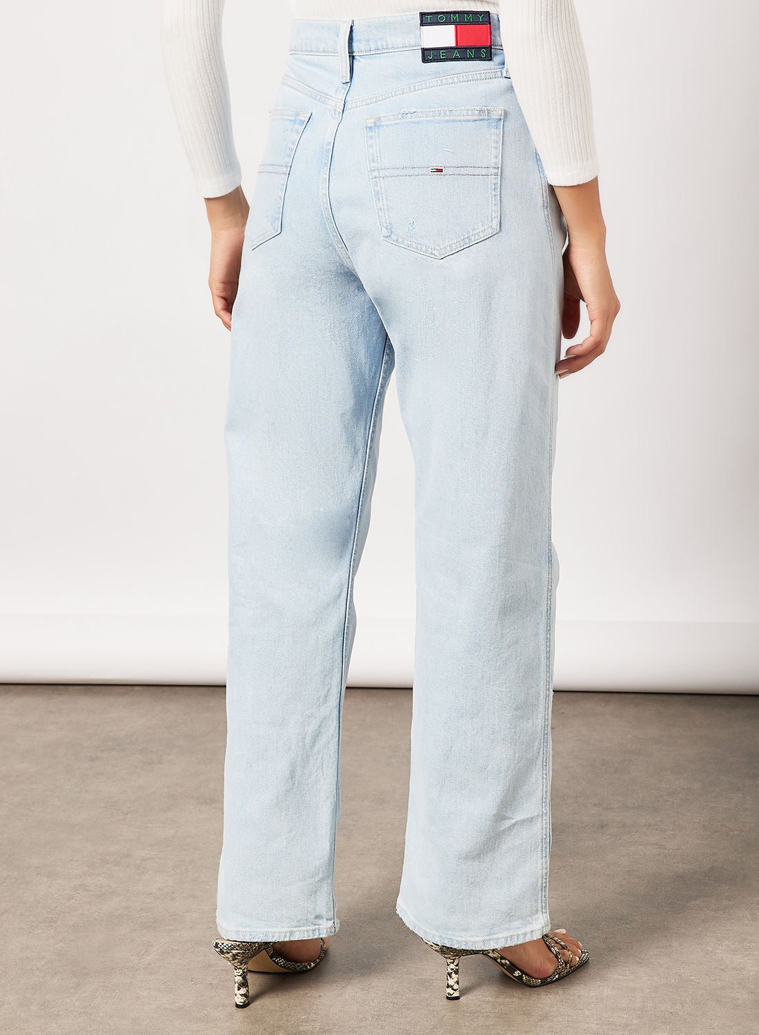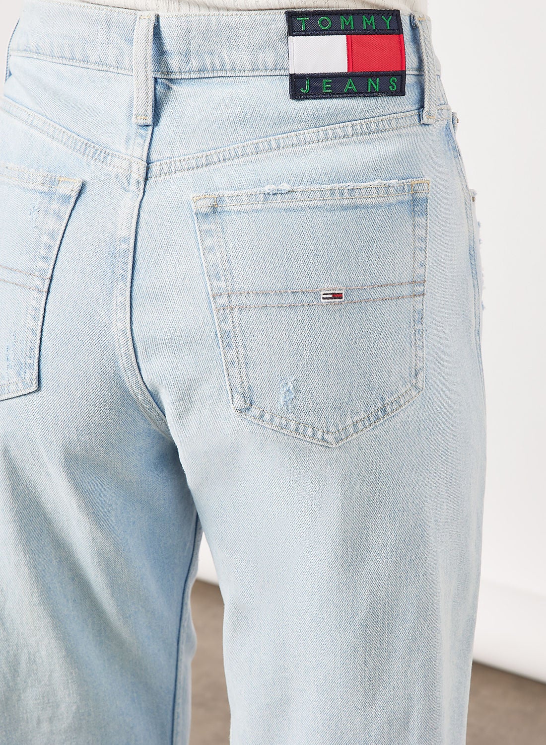 This product features a comfortable, relaxed fit with a blend of cotton and denim fabric. It has a concealed zipper fly with a button top closure, as well as classic five pocket styling and secure belt hooks. The front and hem have a distressed effect for added style. To maintain its quality, please follow the care label instructions when washing. This item also includes Tommy Jeans’ signature branding detail. The model pictured is approximately 174 cm tall and is wearing a size 28.