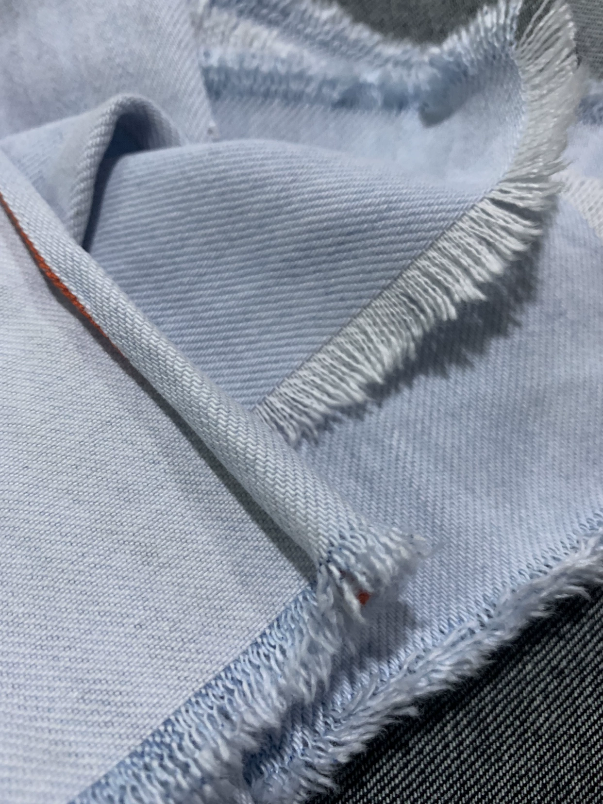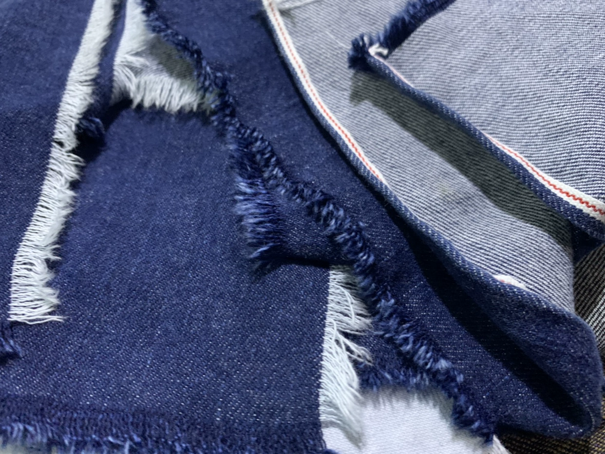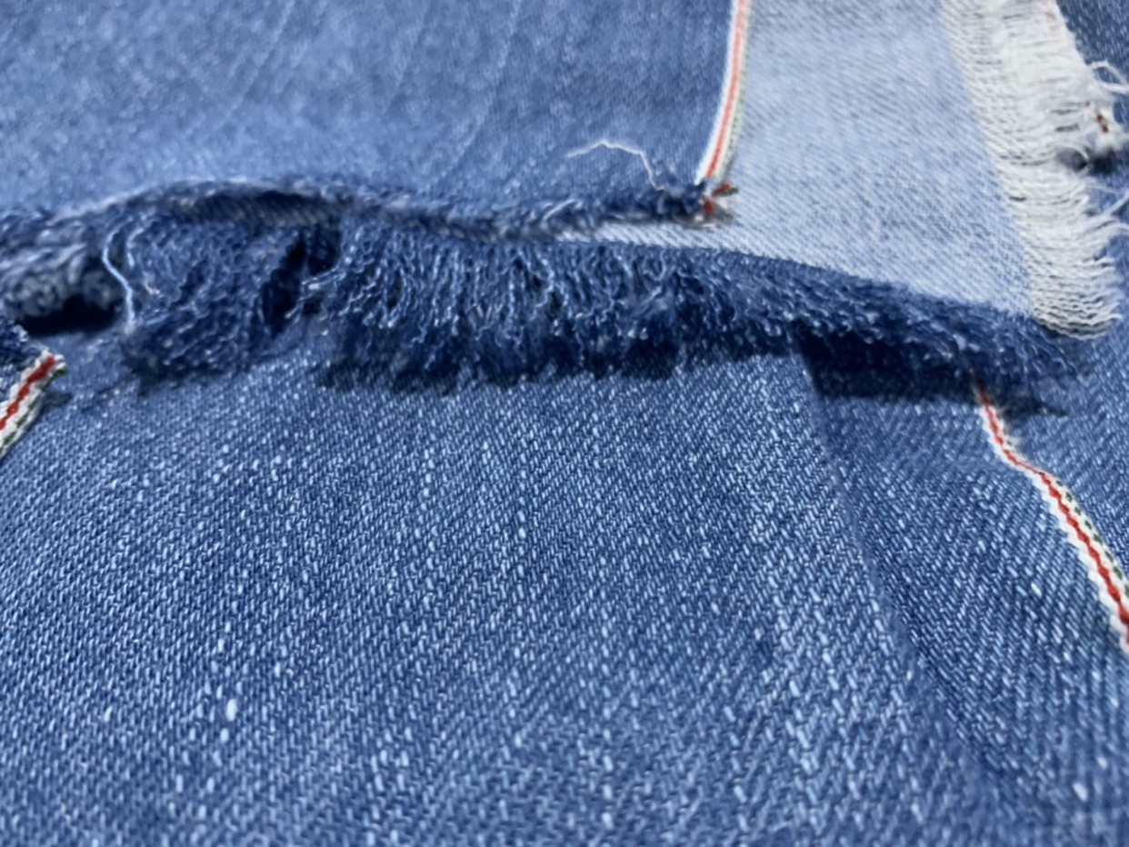 | nameOriginal | Distressed raw edge design college blue denim fabric |