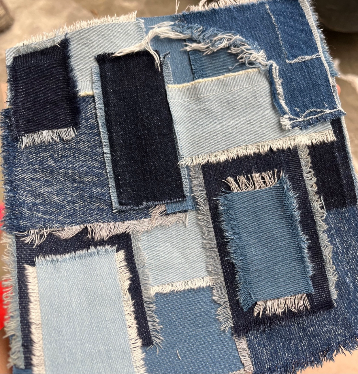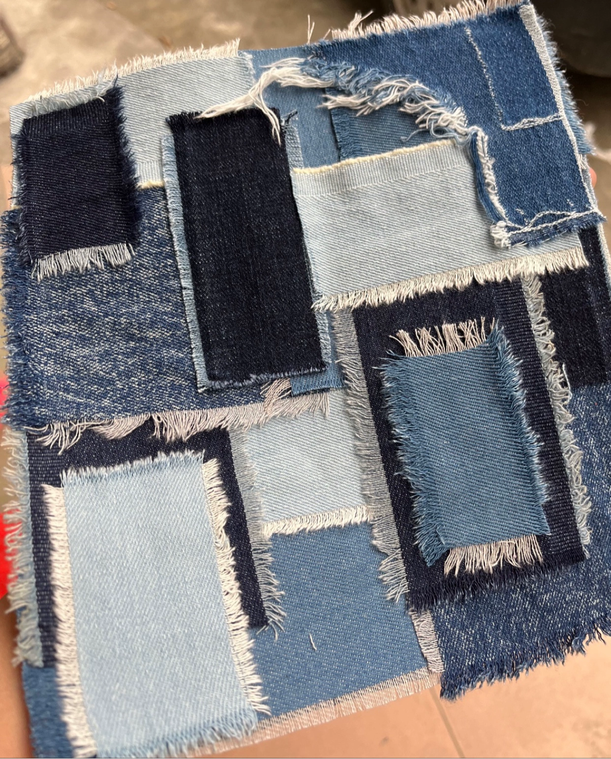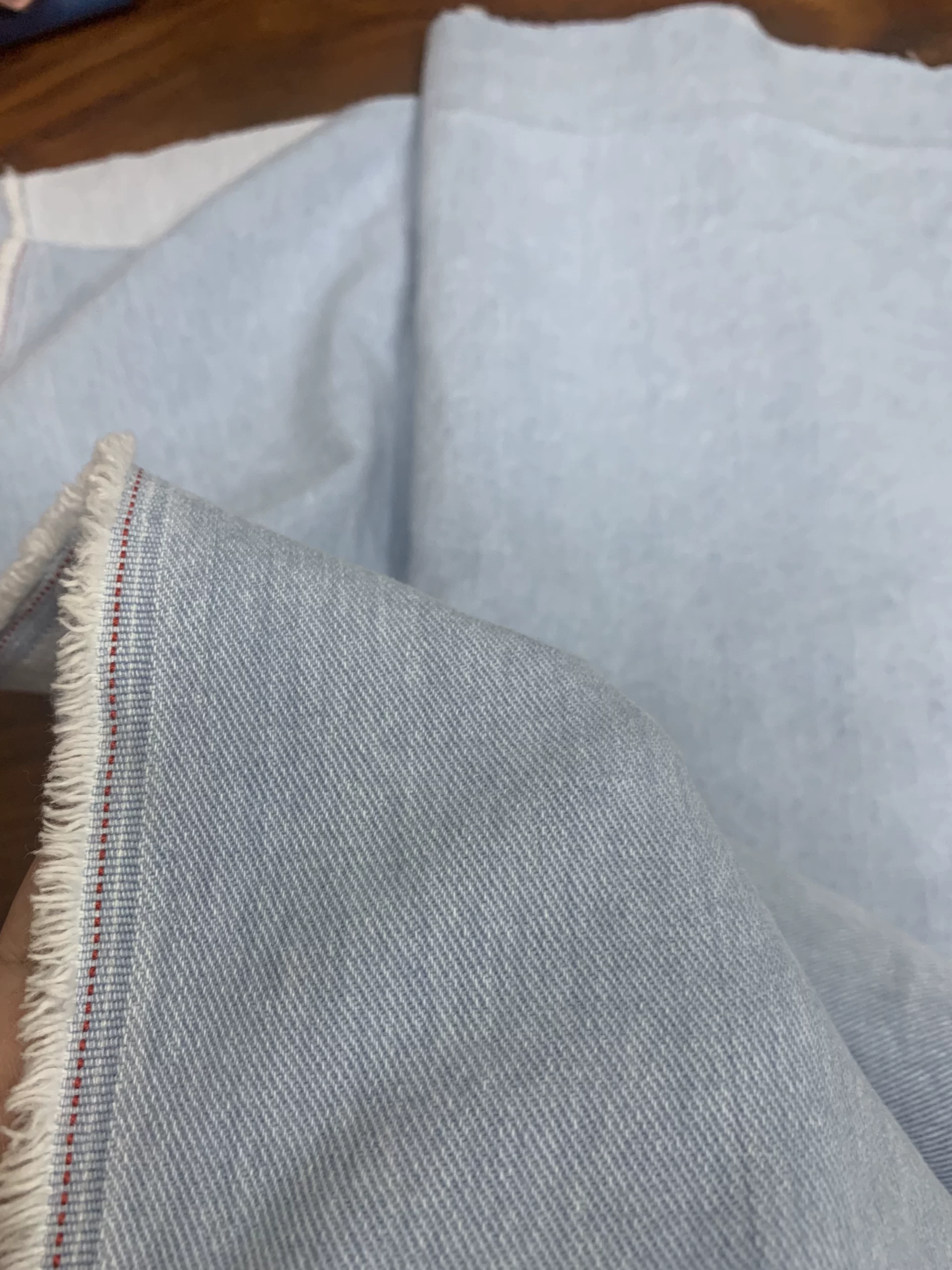 | nameOriginal | Distressed raw edge design college blue denim fabric |