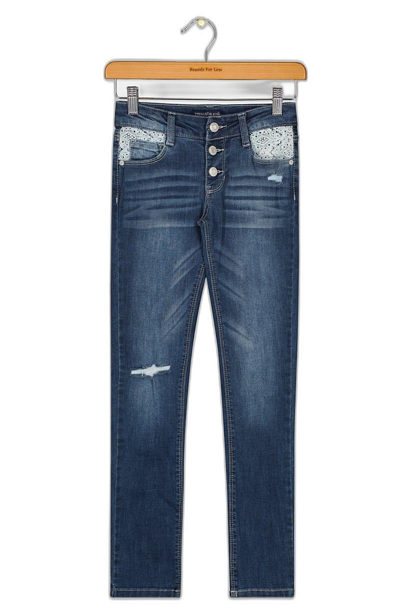 | descriptionOriginal | Bottom Hem : Straight, Care : Machine washable, Ideal For : Girls, Bottom Closure : Button fly, Bottom Style/Pattern : Five pocket style, Disclaimer : Product color may slightly vary due to photographic lighting sources or your monitor settings., Fabrics : 68% Cotton, 25% Polyester, 6% Rayon, 1% Spandex, Occasion : Casual, Pattern & Print : Washed, Textured pattern, Color Family : Blue, |