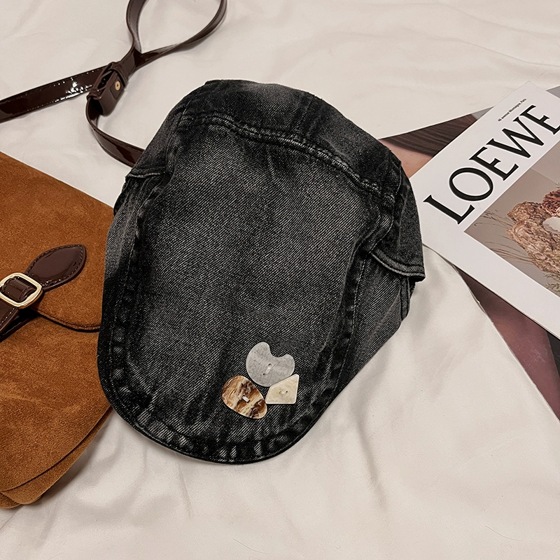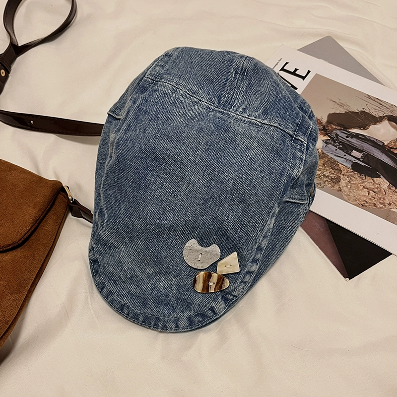 | nameOriginal | Distressed washed denim women wear forward hood buttons backwards |