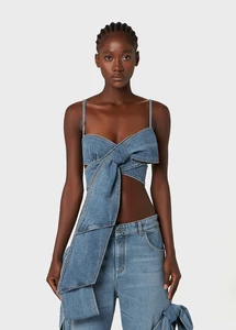 | nameOriginal | Distressed washed lace-up straight-leg pants with three-dimensional bow |