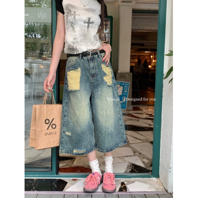 | nameOriginal | Distressed washed ripped wide-leg irregular jeans |