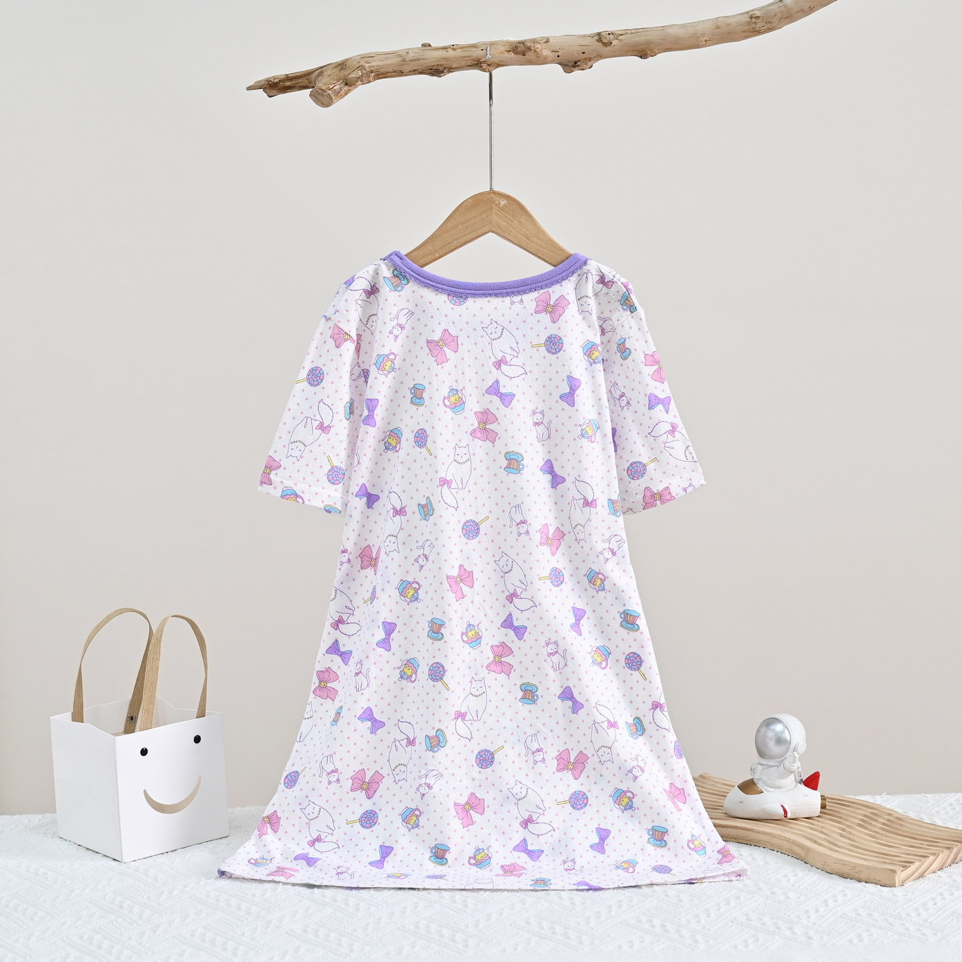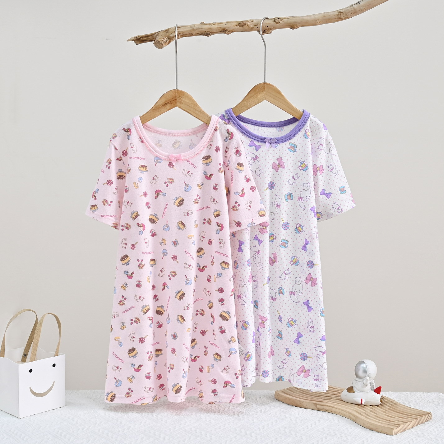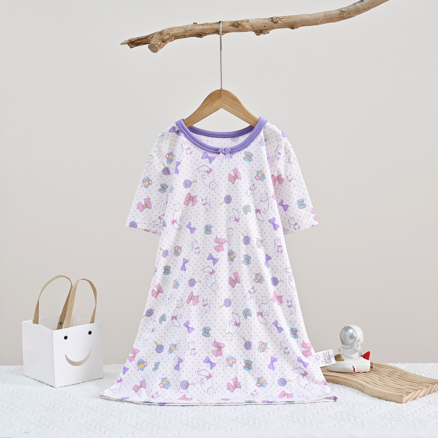 | nameOriginal | Distribution children's jumpsuit nightdress sleeping bag short sleeve wheat cotton mesh girl cute cartoon home clothes air conditioning clothes |