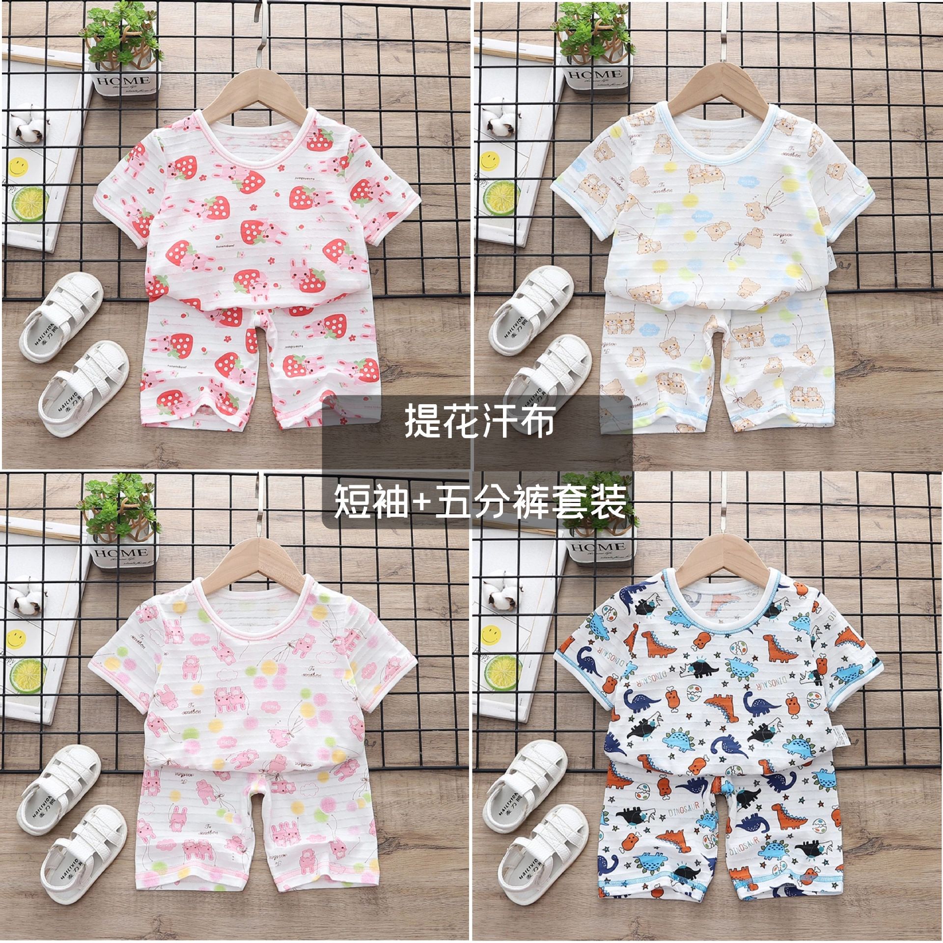 Distribution generation hair Japanese sweat-absorbent breathable soft boys and girls spring summer and autumn bottoming home short-sleeved pants suit