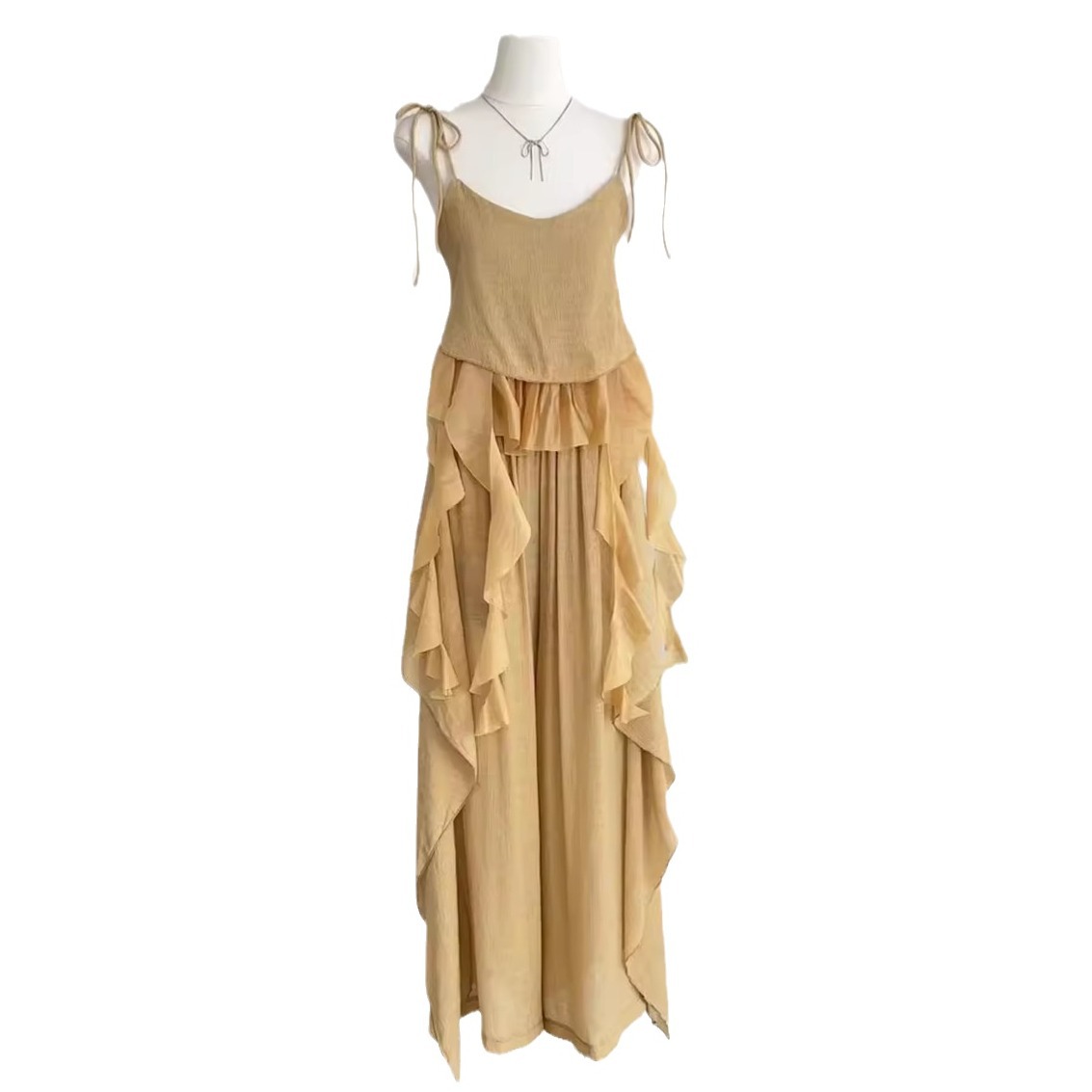 | nameOriginal | District S Ouyang ribbon ruffled shirt women's summer design sleeveless shirt retro short top suit women |