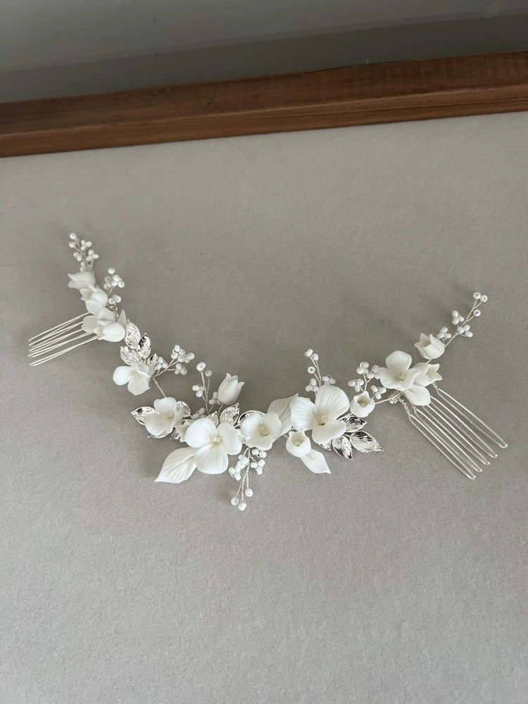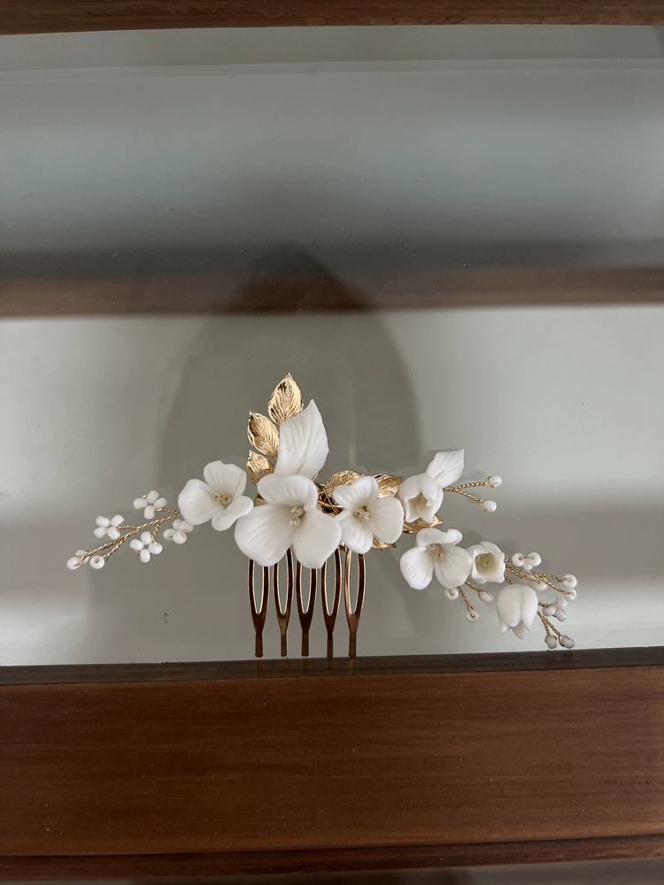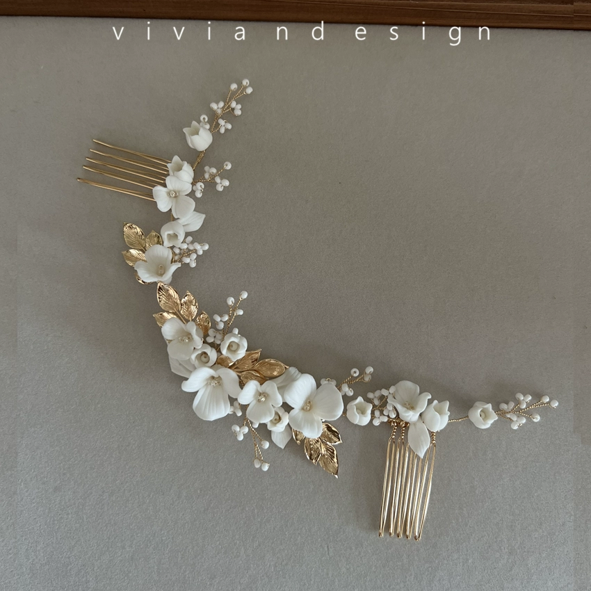 | nameOriginal | Divine appearance! Export list European and American fresh ceramic flowers white long hair comb bride's high-end high-quality headwear |