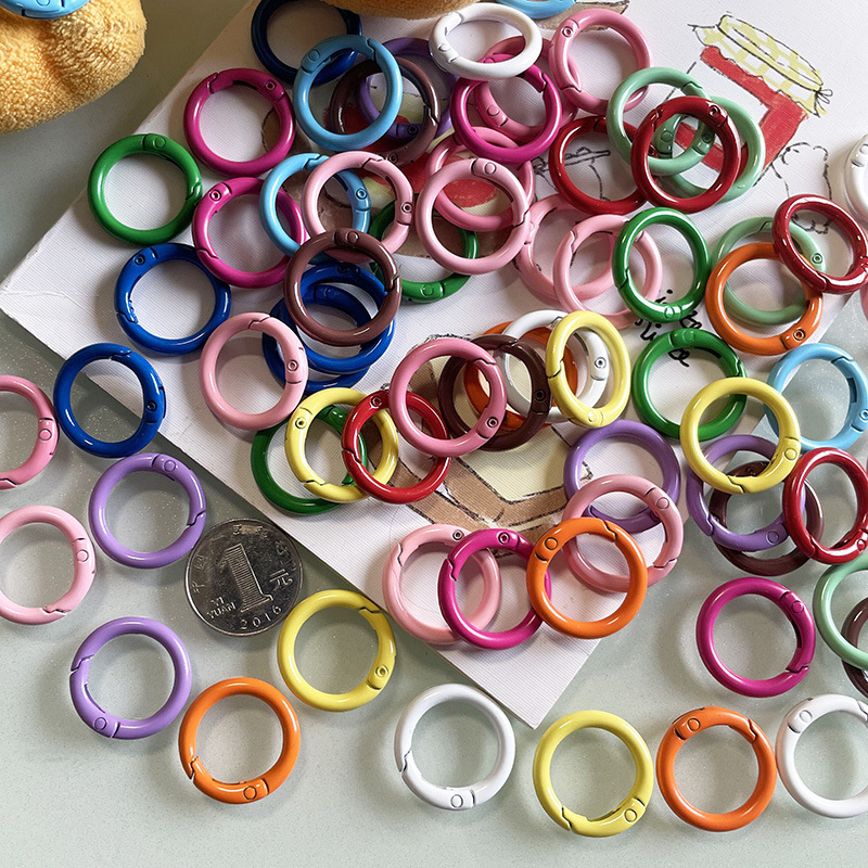 | nameOriginal | DIY accessories color paint spring ring metal opening spring buckle round key chain mobile phone card hanging |