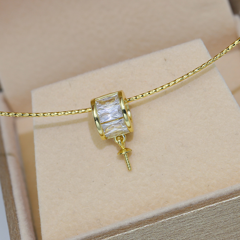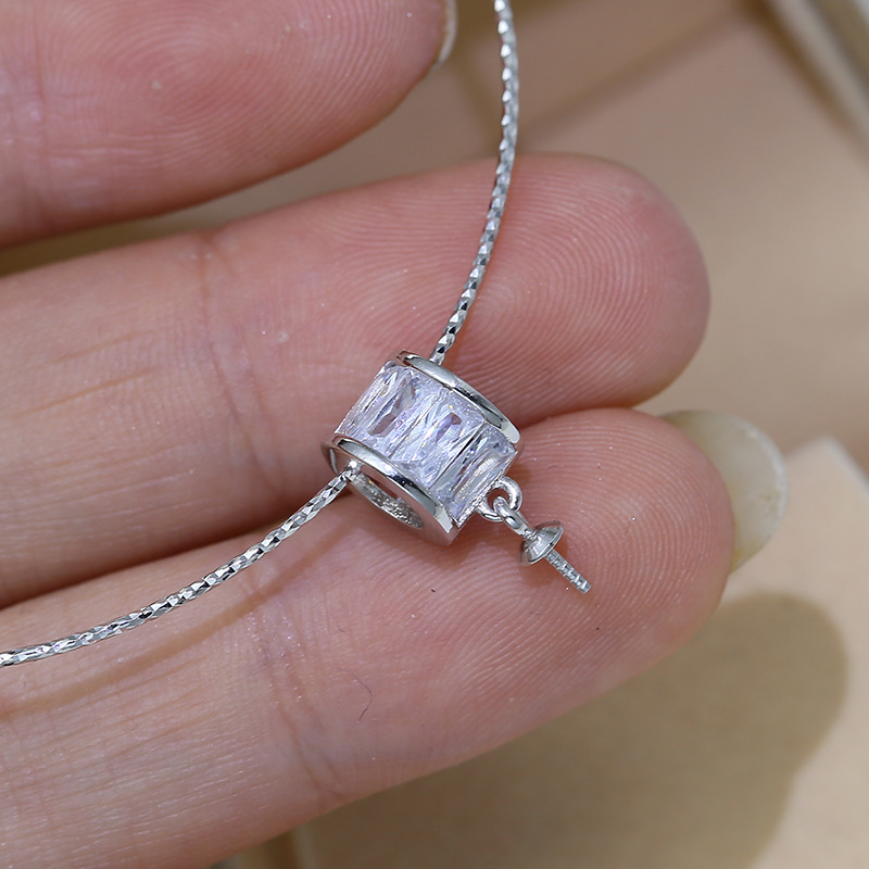 DIY accessories S925 sterling silver pearl pendant accessories T square zircon necklace pendant silver handmade jewelry